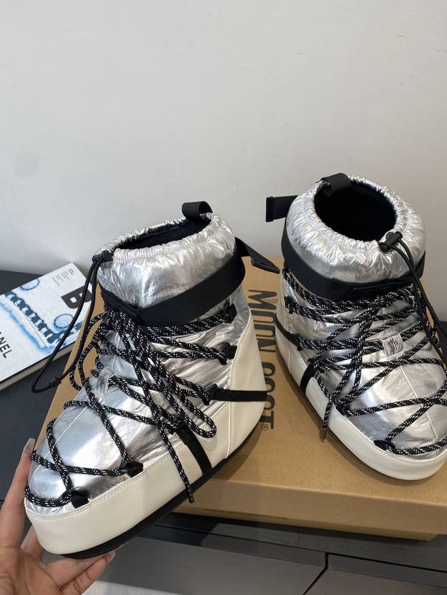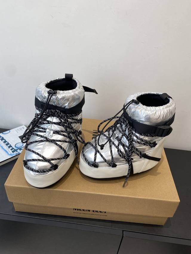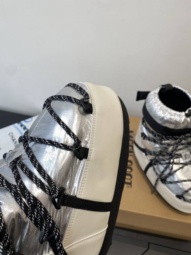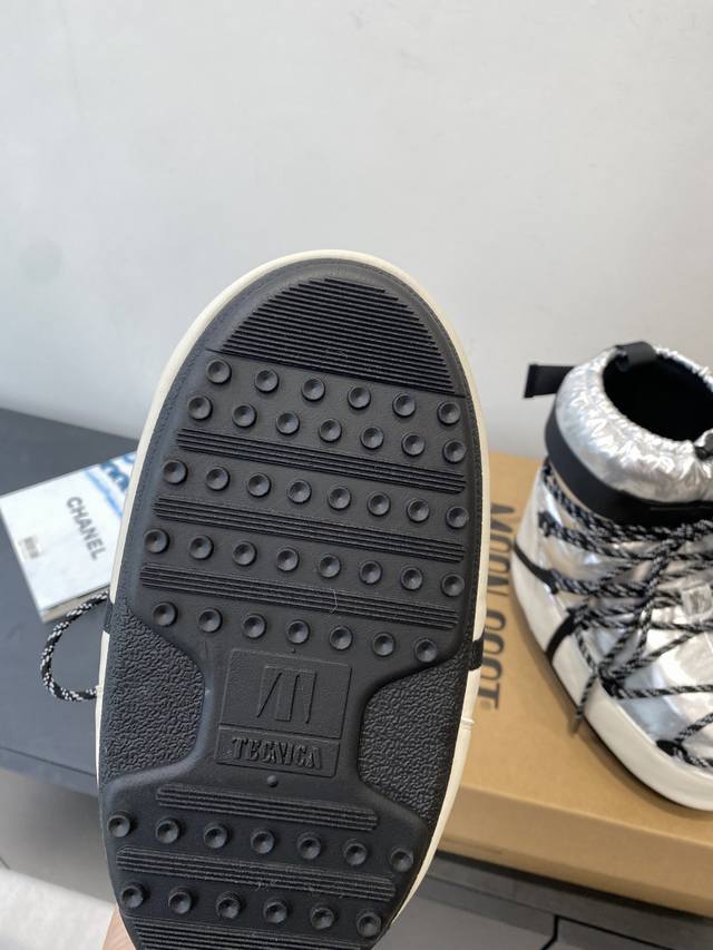 Moon Boot 秋冬最新款雪地靴 丑萌滑雪鞋 DDD 超多明星网红种草 秋冬滑雪必备款 现在有一款更另类的雪地靴又杀回来了 内增高5Cm那就是Moon Boot月亮靴在千禧年就已经非常火了 当年paris Hilton、Victoria Beckham 等名人经常穿它 如今Y2K风潮再次流行 万人大秀的丑萌雪地靴重新翻红 不分男女不分左右 看着巨无霸巨显瘦还暖和好穿 DDD 鞋面采用原版进口牛皮革 防水丝绸布 DDD 内里垫脚复织羊羔毛 DDD 内增高4Cm DDD 原版热塑性橡胶大底 DDD 码数: