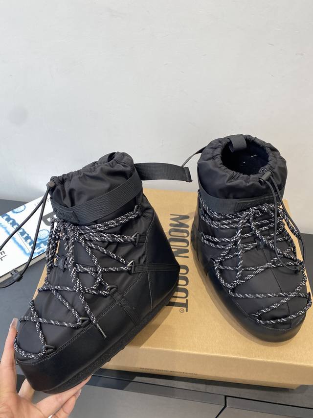 Moon Boot 秋冬最新款雪地靴 丑萌滑雪鞋 DDD 超多明星网红种草 秋冬滑雪必备款 现在有一款更另类的雪地靴又杀回来了 内增高5Cm那就是Moon Boot月亮靴在千禧年就已经非常火了 当年paris Hilton、Victoria Beckham 等名人经常穿它 如今Y2K风潮再次流行 万人大秀的丑萌雪地靴重新翻红 不分男女不分左右 看着巨无霸巨显瘦还暖和好穿 DDD 鞋面采用原版进口牛皮革 防水丝绸布 DDD 内里垫脚复织羊羔毛 DDD 内增高4Cm DDD 原版热塑性橡胶大底 DDD 码数: