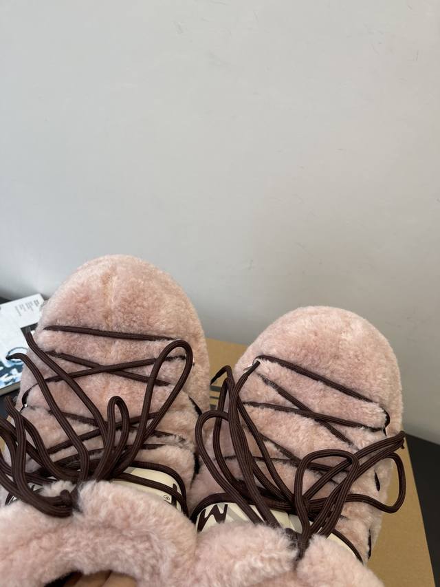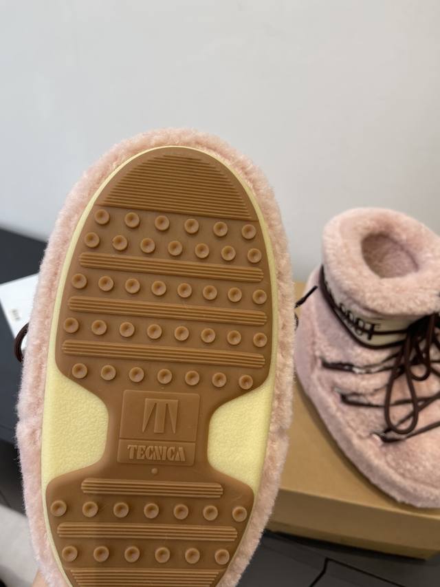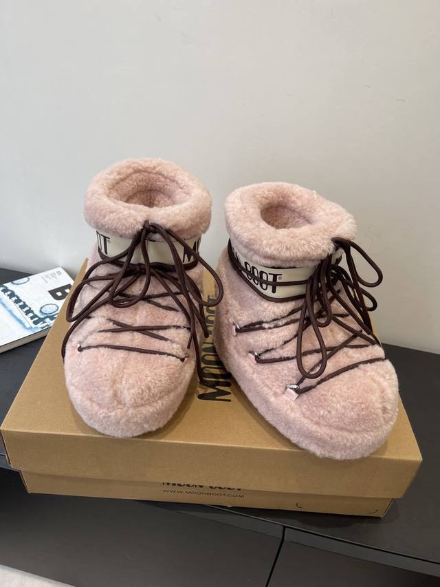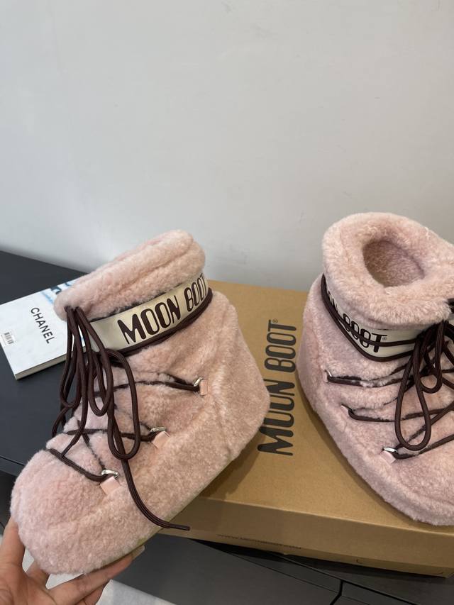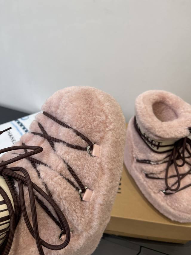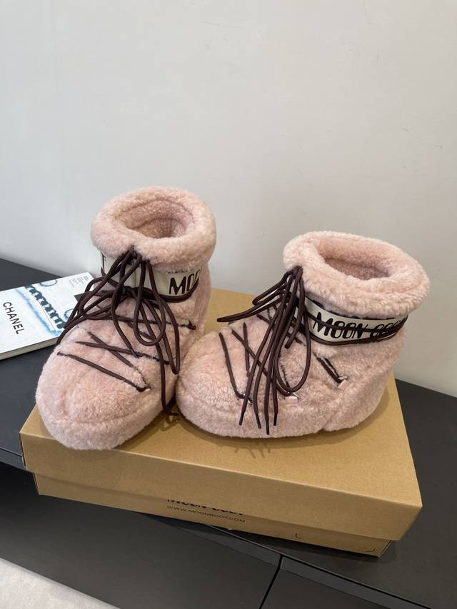 Moon Boot 秋冬最新款雪地靴 丑萌滑雪鞋 DDD 超多明星网红种草 秋冬滑雪必备款 现在有一款更另类的雪地靴又杀回来了 内增高5Cm那就是Moon Boot月亮靴在千禧年就已经非常火了 当年paris Hilton、Victoria Beckham 等名人经常穿它 如今Y2K风潮再次流行 万人大秀的丑萌雪地靴重新翻红 不分男女不分左右 看着巨无霸巨显瘦还暖和好穿 DDD 鞋面原版羊卷毛 DDD 内里垫脚 100%丝绵内胆 DDD 内增高4Cm DDD 原版热塑性橡胶大底 DDD 码数:35-39