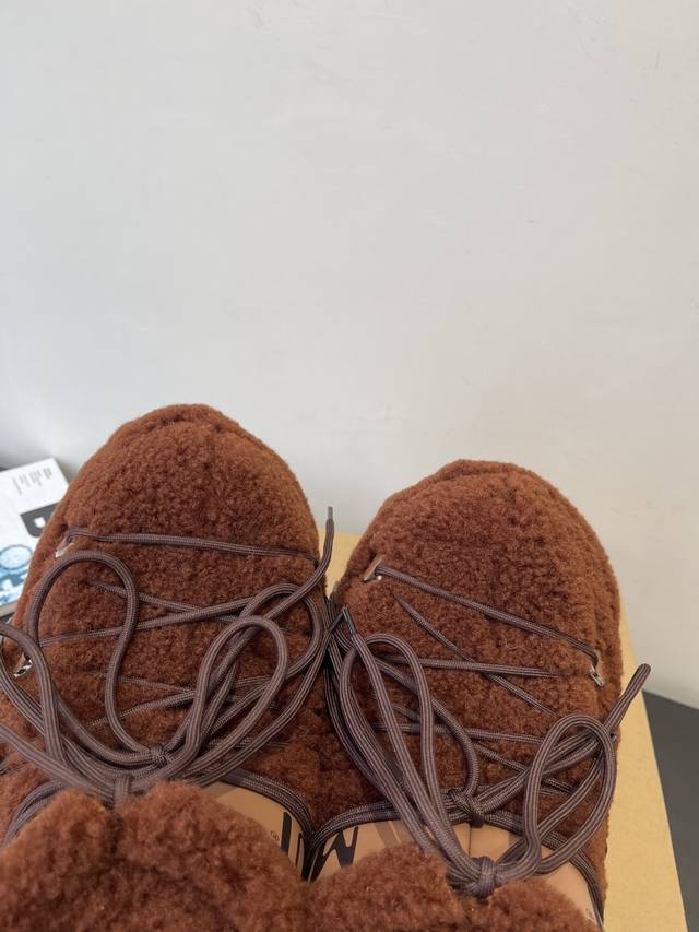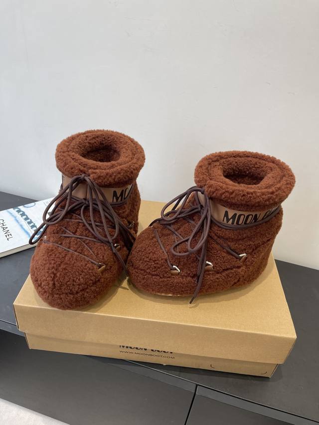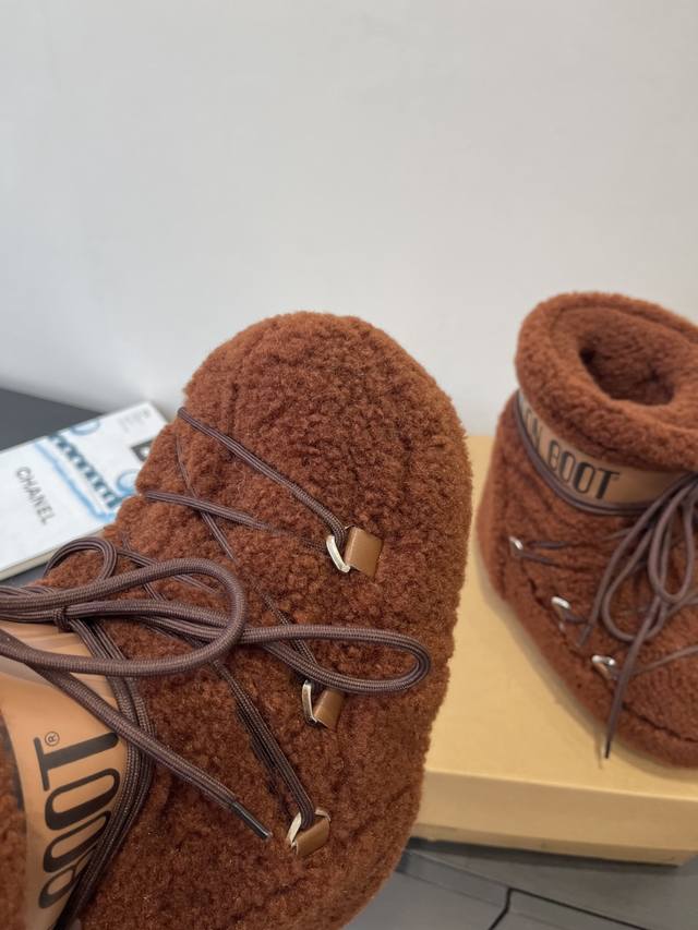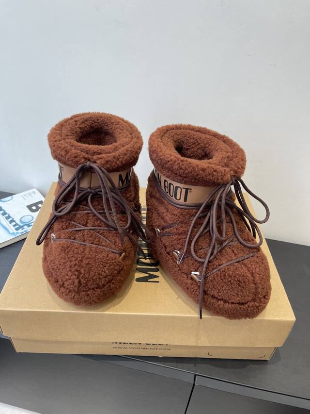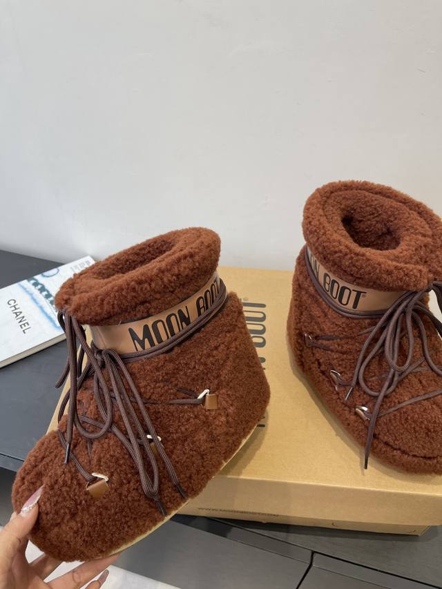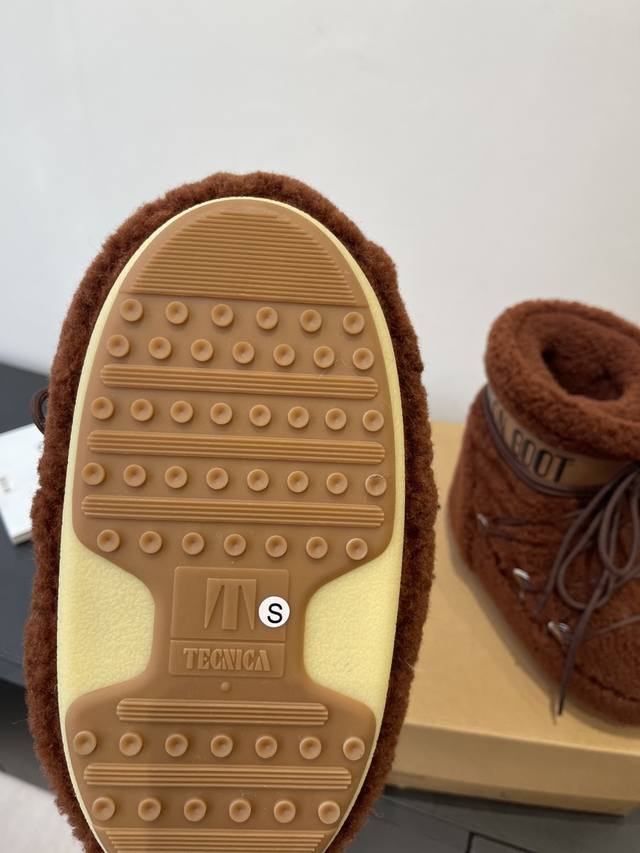 Moon Boot 秋冬最新款雪地靴 丑萌滑雪鞋 DDD 超多明星网红种草 秋冬滑雪必备款 现在有一款更另类的雪地靴又杀回来了 内增高5Cm那就是Moon Boot月亮靴在千禧年就已经非常火了 当年paris Hilton、Victoria Beckham 等名人经常穿它 如今Y2K风潮再次流行 万人大秀的丑萌雪地靴重新翻红 不分男女不分左右 看着巨无霸巨显瘦还暖和好穿 DDD 鞋面原版羊卷毛 DDD 内里垫脚 100%丝绵内胆 DDD 内增高4Cm DDD 原版热塑性橡胶大底 DDD 码数:35-39