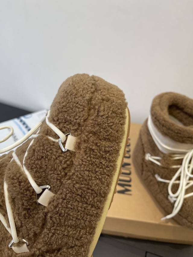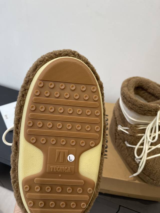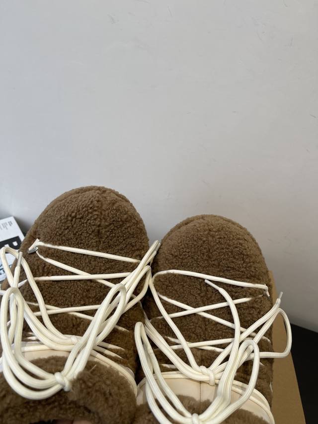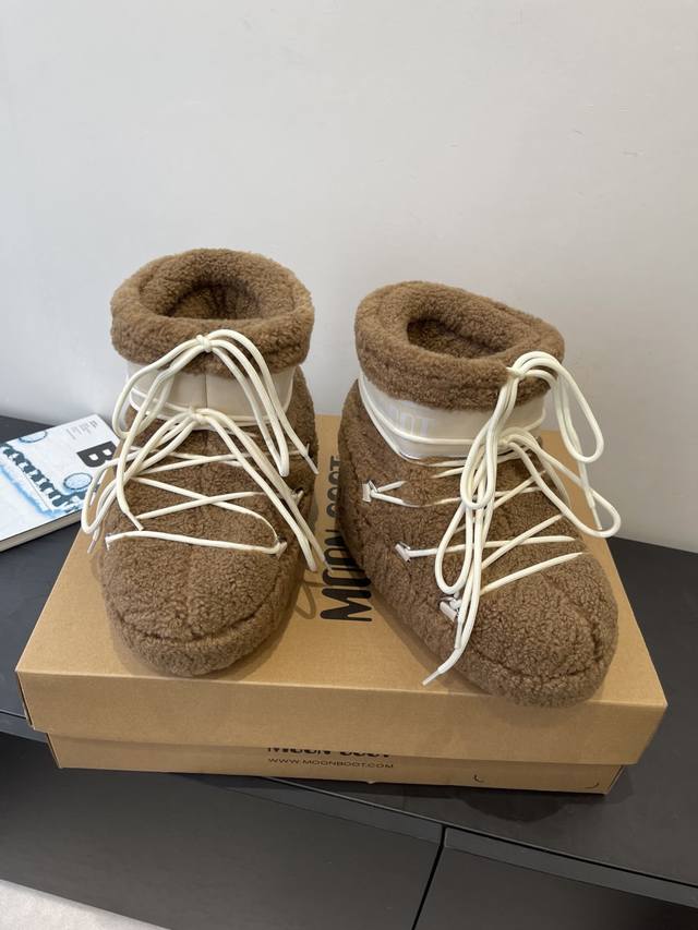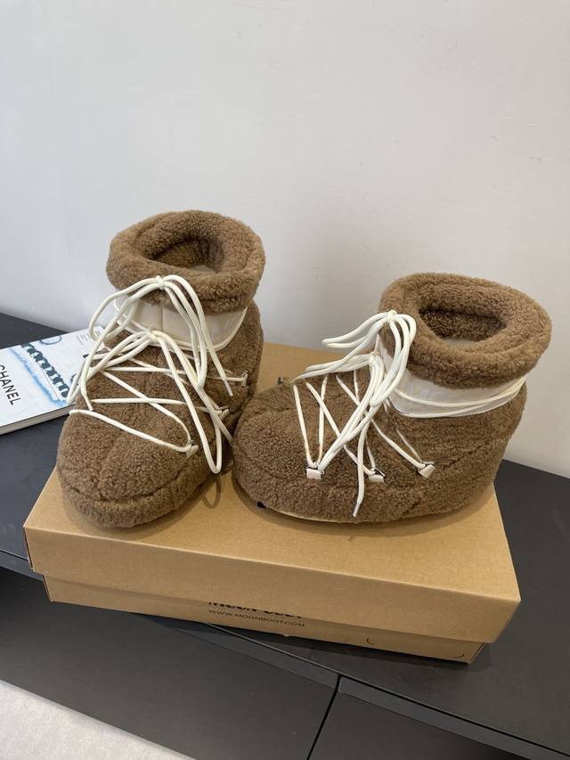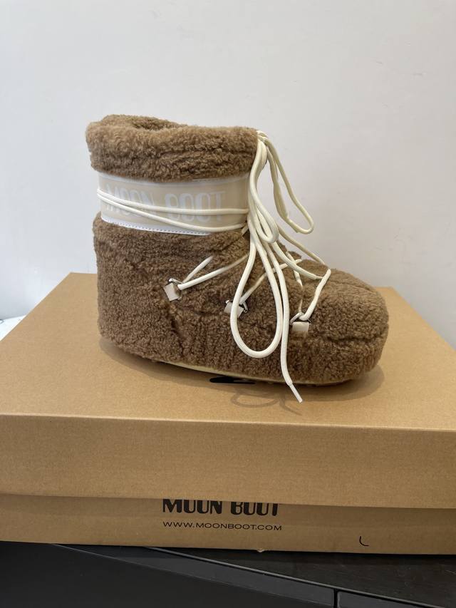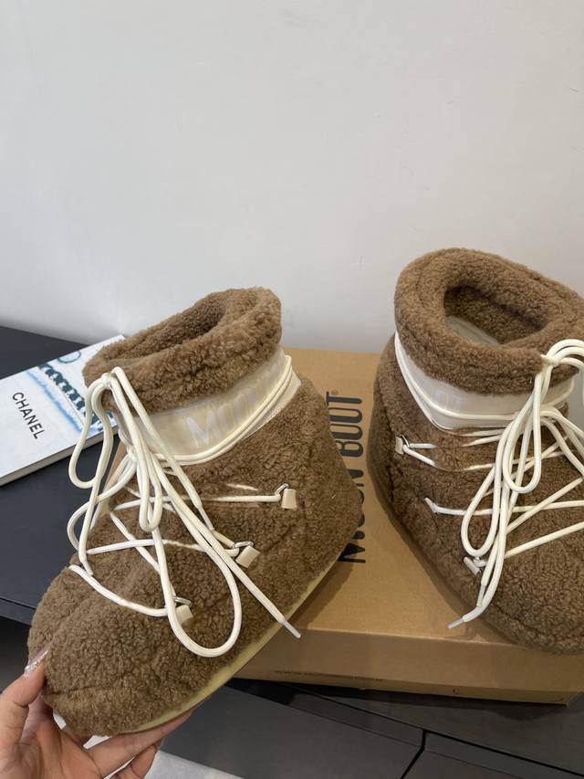 Moon Boot 秋冬最新款雪地靴 丑萌滑雪鞋 DDD 超多明星网红种草 秋冬滑雪必备款 现在有一款更另类的雪地靴又杀回来了 内增高5Cm那就是Moon Boot月亮靴在千禧年就已经非常火了 当年paris Hilton、Victoria Beckham 等名人经常穿它 如今Y2K风潮再次流行 万人大秀的丑萌雪地靴重新翻红 不分男女不分左右 看着巨无霸巨显瘦还暖和好穿 DDD 鞋面原版羊卷毛 DDD 内里垫脚 100%丝绵内胆 DDD 内增高4Cm DDD 原版热塑性橡胶大底 DDD 码数:35-39
