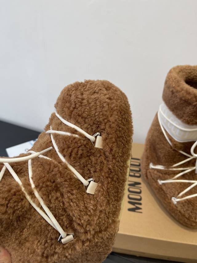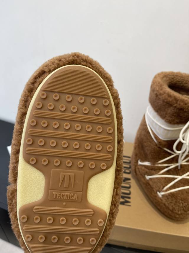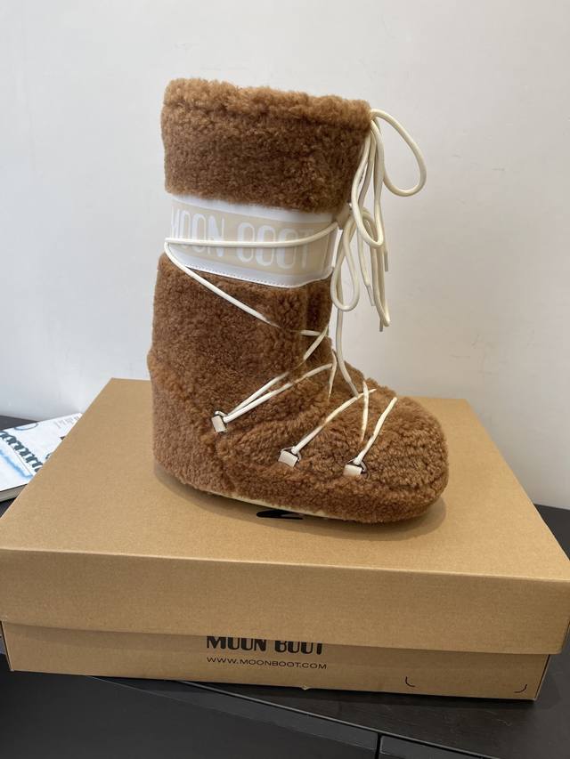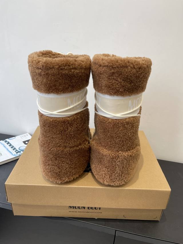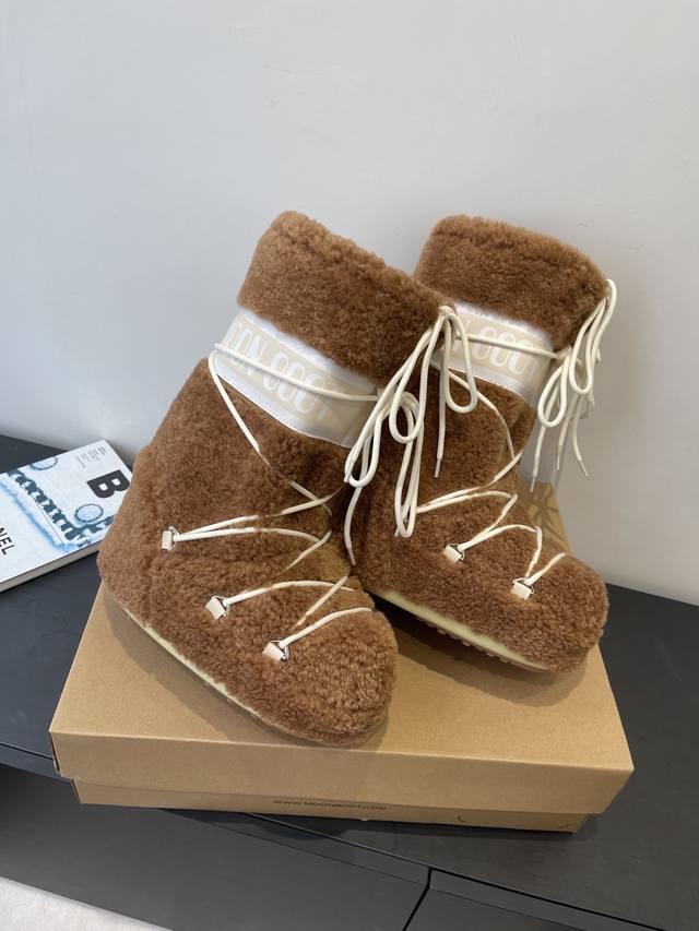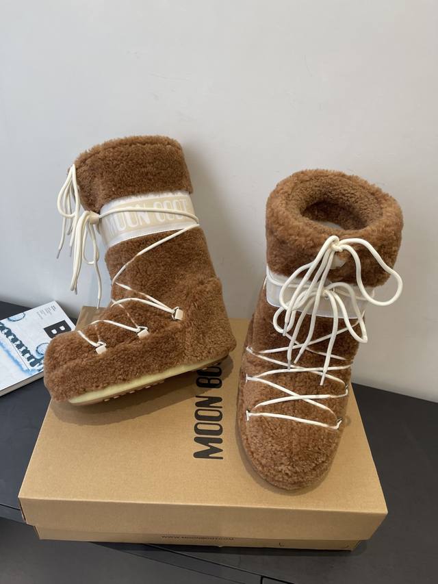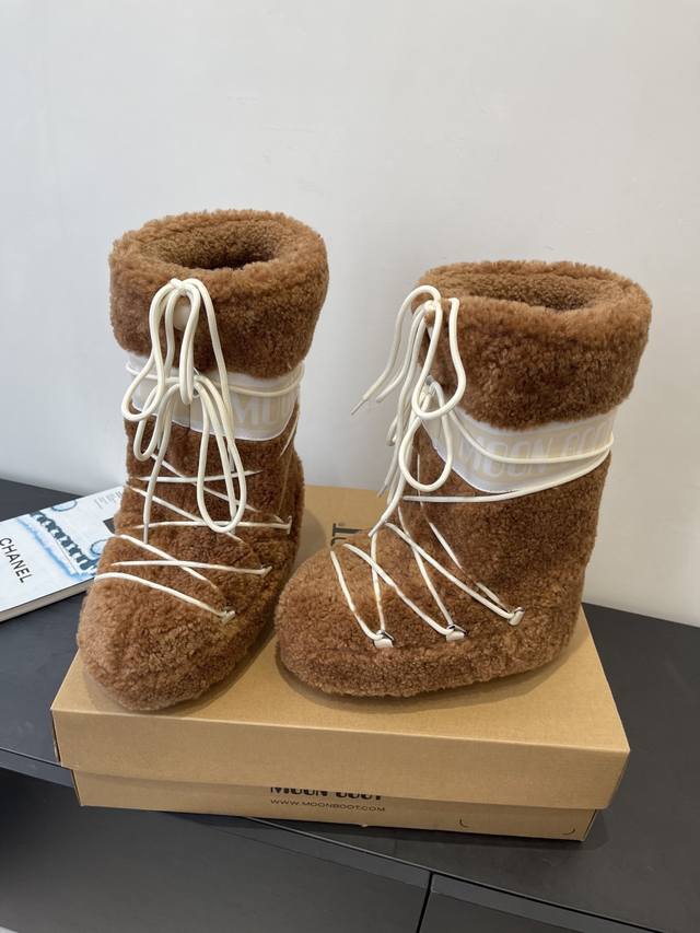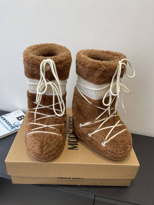 Moon Boot 秋冬最新款雪地靴 丑萌滑雪鞋 DDD 超多明星网红种草 秋冬滑雪必备款 现在有一款更另类的雪地靴又杀回来了 内增高5Cm那就是Moon Boot月亮靴在千禧年就已经非常火了 当年paris Hilton、Victoria Beckham 等名人经常穿它 如今Y2K风潮再次流行 万人大秀的丑萌雪地靴重新翻红 不分男女不分左右 看着巨无霸巨显瘦还暖和好穿 DDD 鞋面原版羊卷毛 DDD 内里垫脚 100%丝绵内胆 DDD 内增高4Cm DDD 原版热塑性橡胶大底 DDD 码数:35-39
