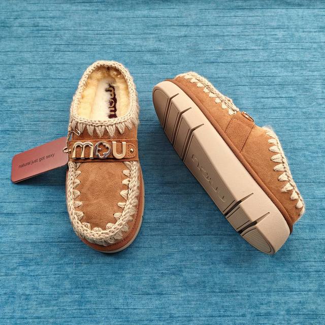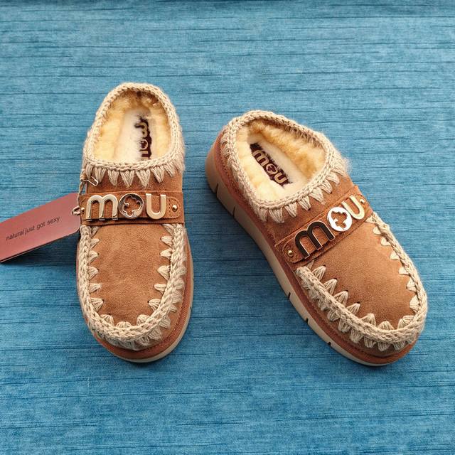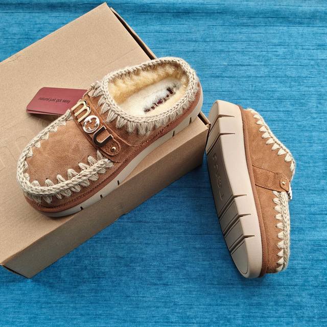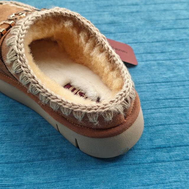 / Mou毛拖 秋冬Mou Eskimo新款系列 原始外观,金属五金扣点缀充满自信,纯手工钩织羊毛毛线 %真羊毛毛线,保暖舒适加倍呵护双脚,冬天必备单品~ 鞋面:进