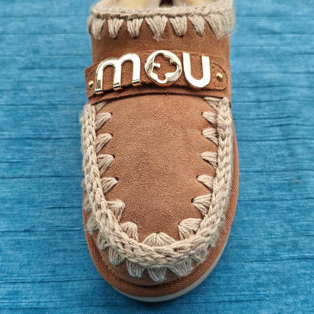 Mou毛拖 秋冬Mou Eskimo新款系列 原始外观,金属五金扣点缀充满自信,纯手工钩织羊毛毛线 %真羊毛毛线,保暖舒适加倍呵护双脚,冬天必备单品~ 鞋面:进