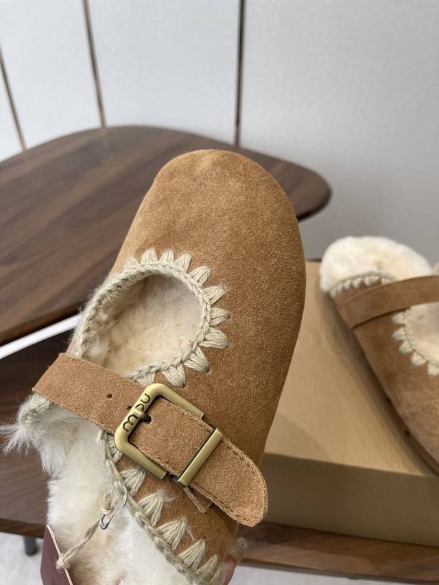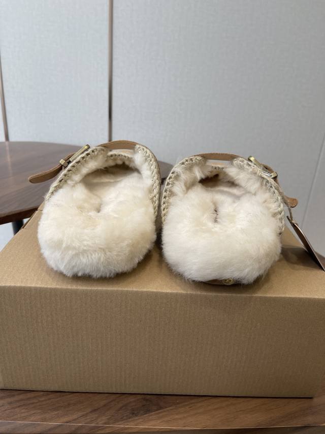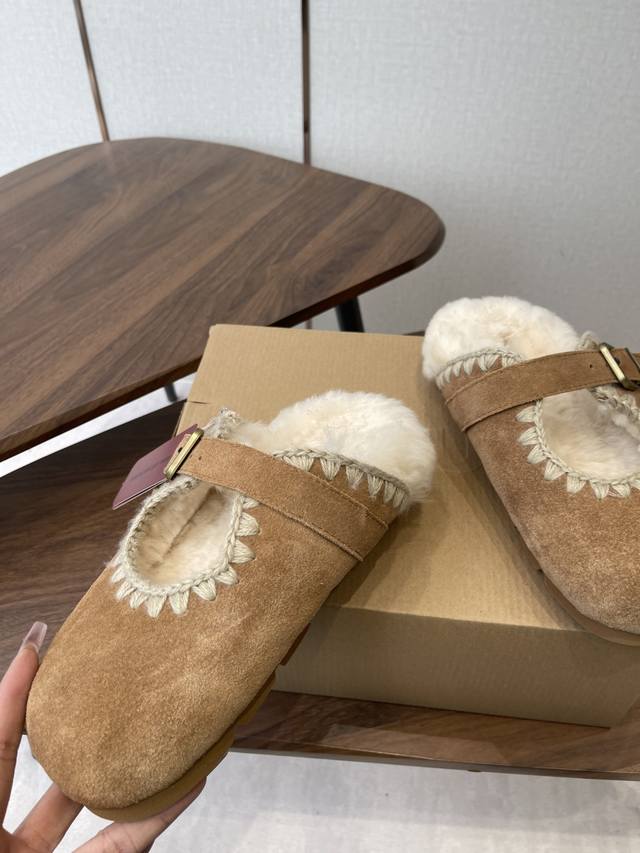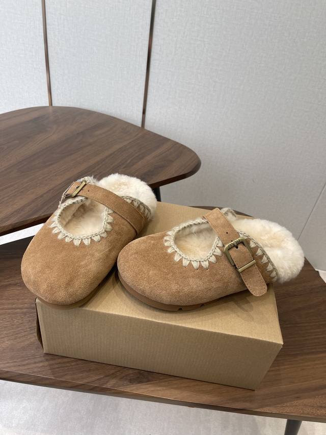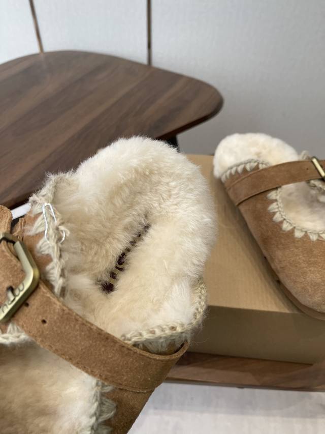 / Mou潮牌羊毛半拖 辨识度极高的鞋履设计风格,大自然和皮草艺术结合 秋冬季节风靡全球的潮流单品,保暖神器,时尚博主最爱,呆萌丑萌雪地靴 鞋面 皮毛一体全手工缝线