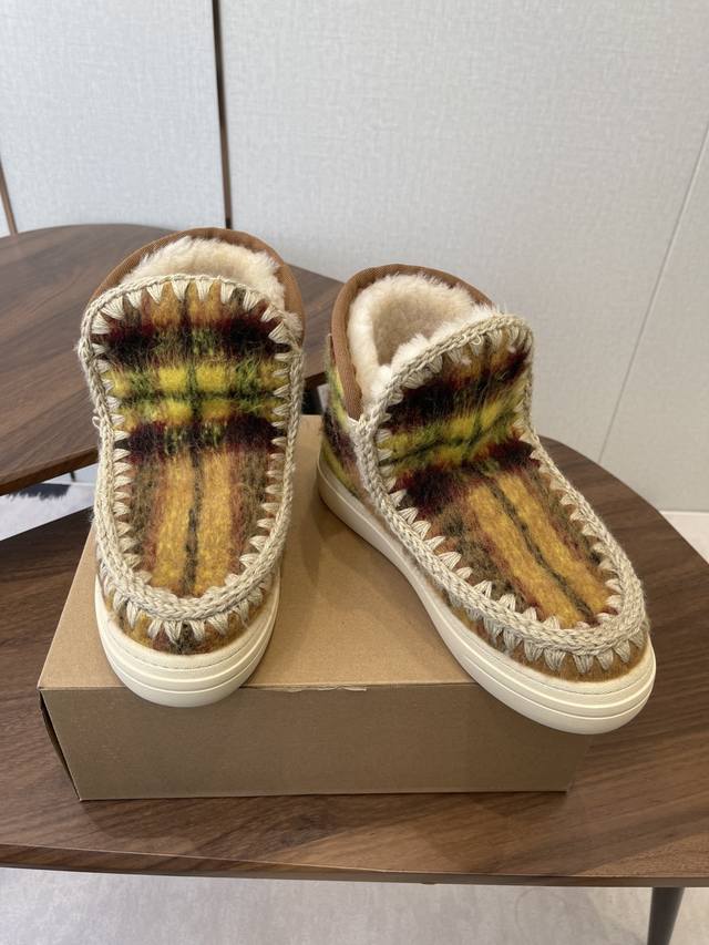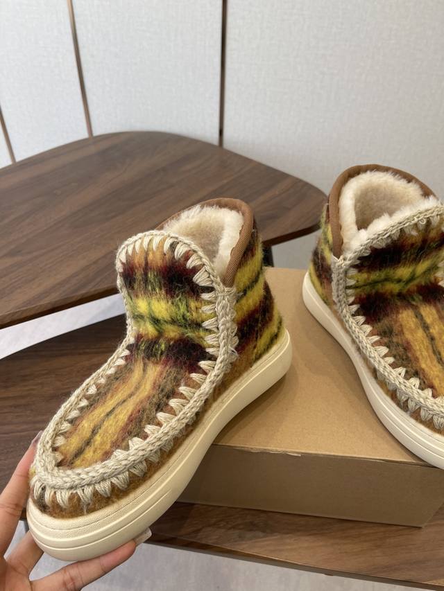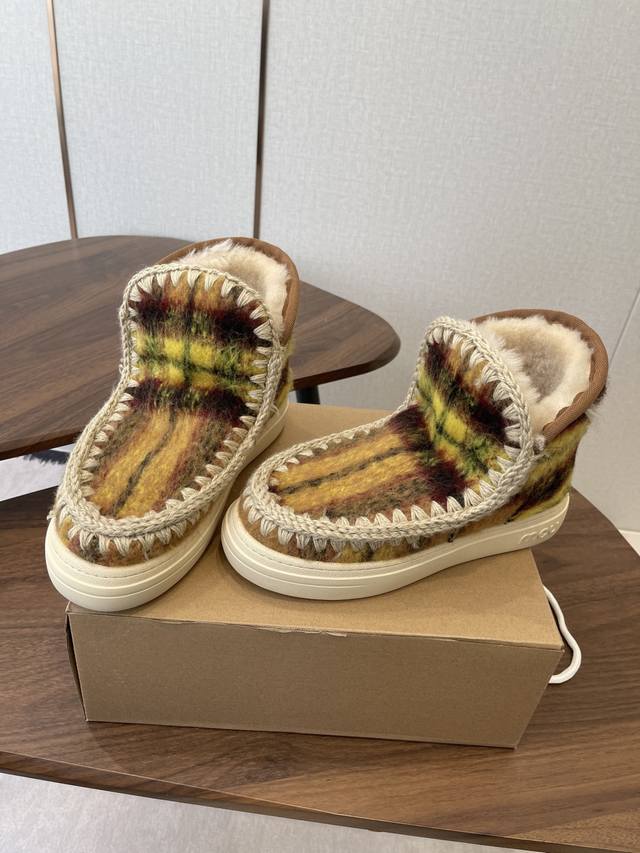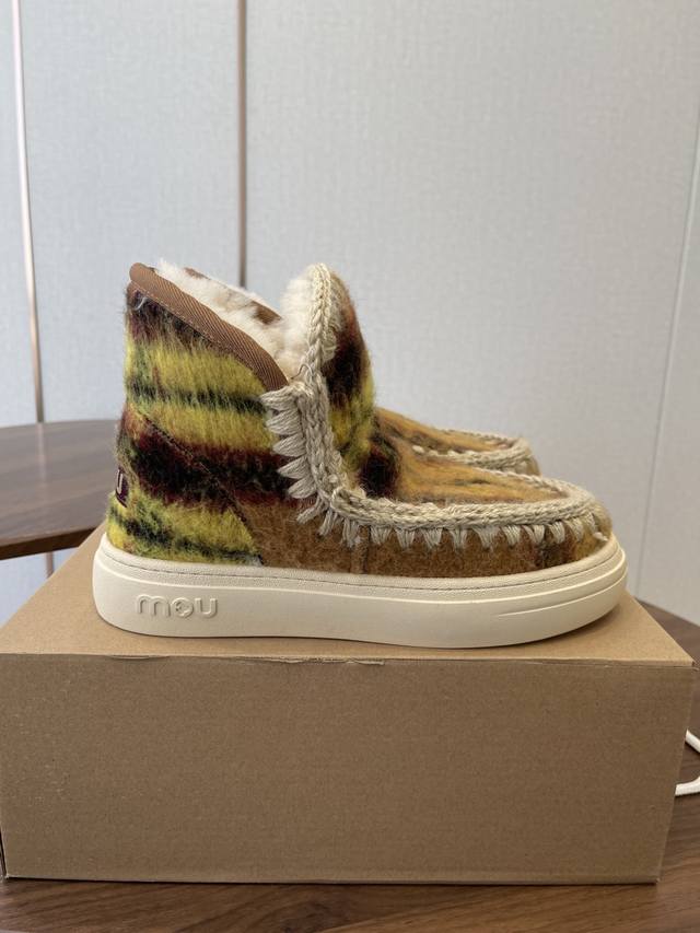 / Mou潮牌羊毛雪地靴 辨识度极高的鞋履设计风格,大自然和皮草艺术结合 秋冬季节风靡全球的潮流单品,保暖神器,时尚博主最爱,呆萌丑萌雪地靴 鞋面 皮毛一体全手工缝