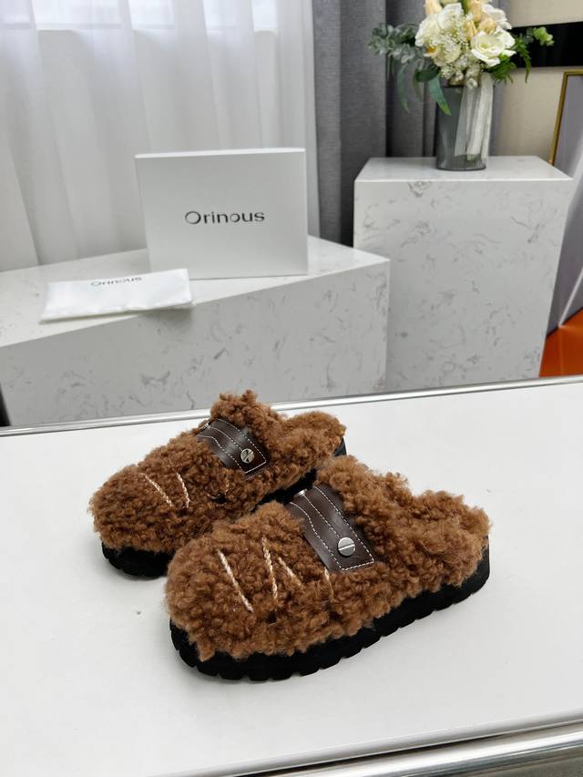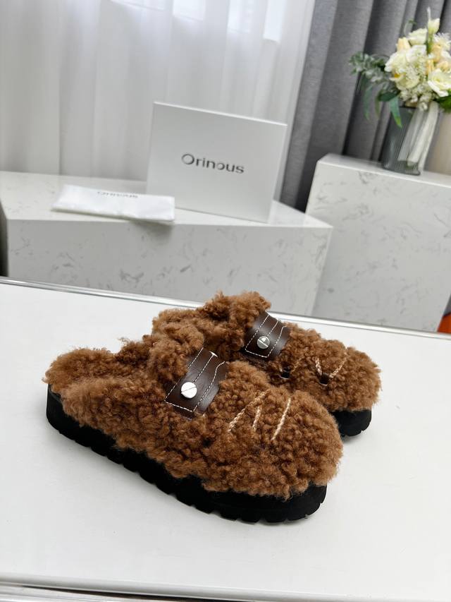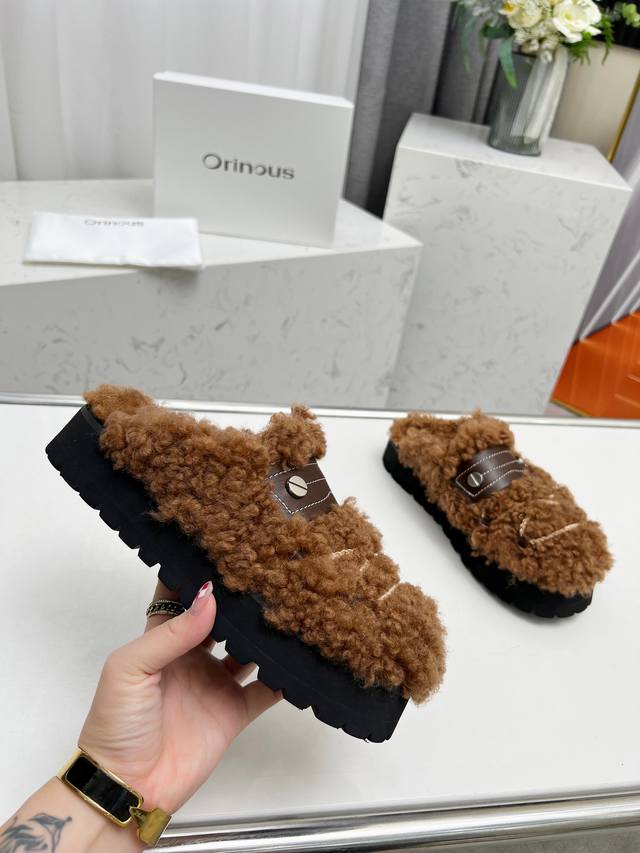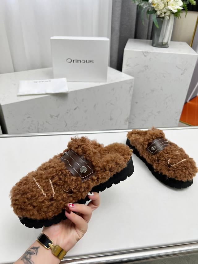 Orinous 出厂价p 独家爆款 冬天必入手的一款颜值与实力并存的毛毛鞋,防寒保暖,颜值在线,百分百羊羔羊面料+防羊毛内里,羊毛鞋垫 给你冬日温暖原版开模旧金