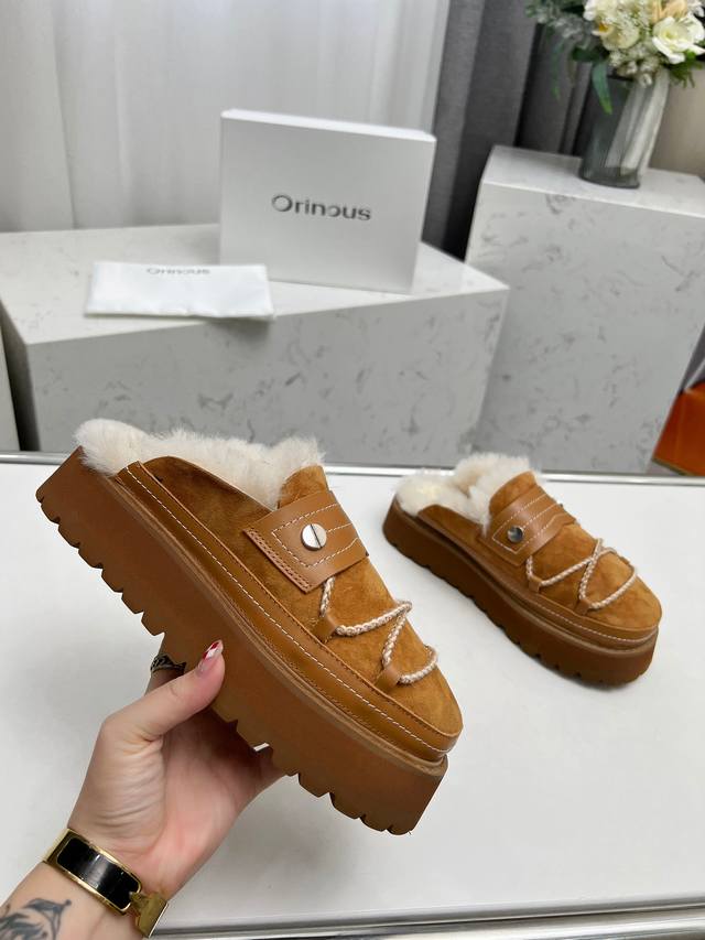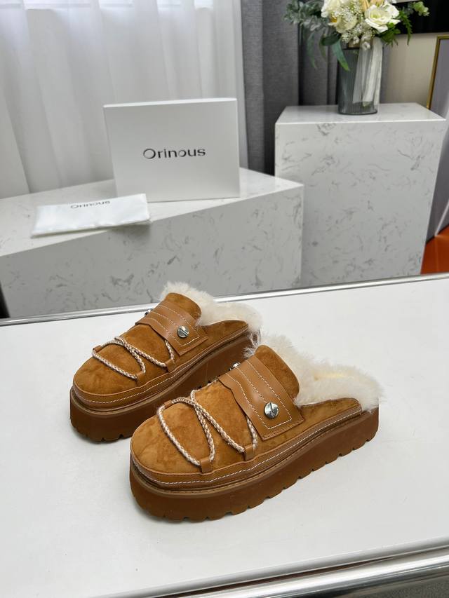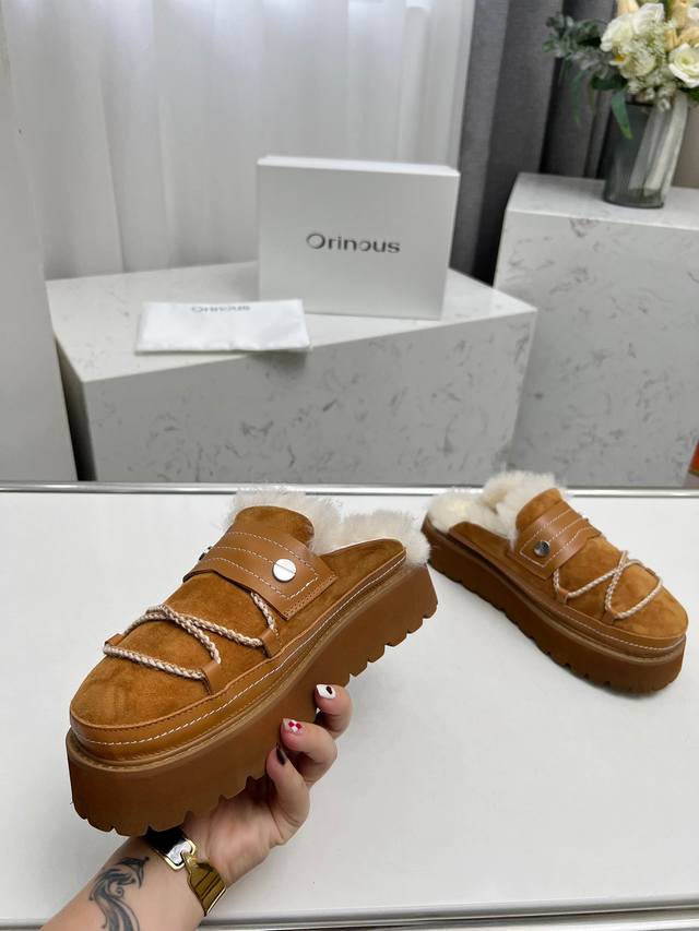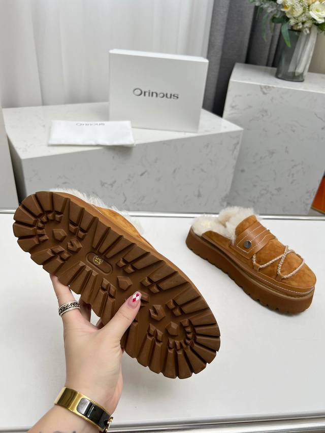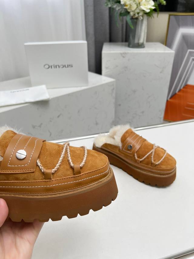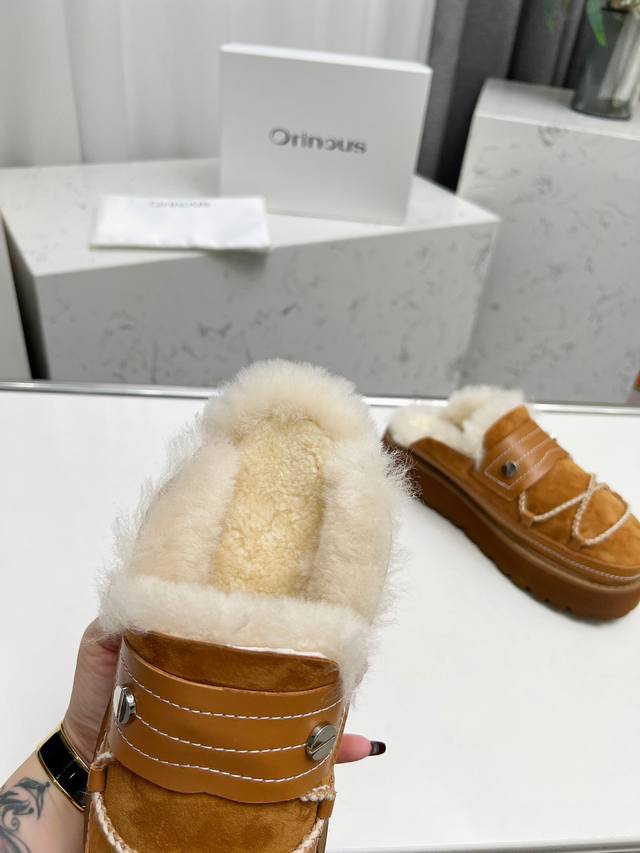 Orinous 出厂价p 独家爆款 冬天必入手的一款颜值与实力并存的毛毛鞋,防寒保暖,颜值在线,羊猄皮面料贴全羊毛内里,羊毛鞋垫 给你冬日温暖原版开模旧金属铃铛