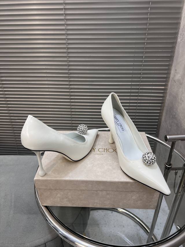 Jimmy Choo|周仰杰新款水钻球尖头高跟鞋单鞋