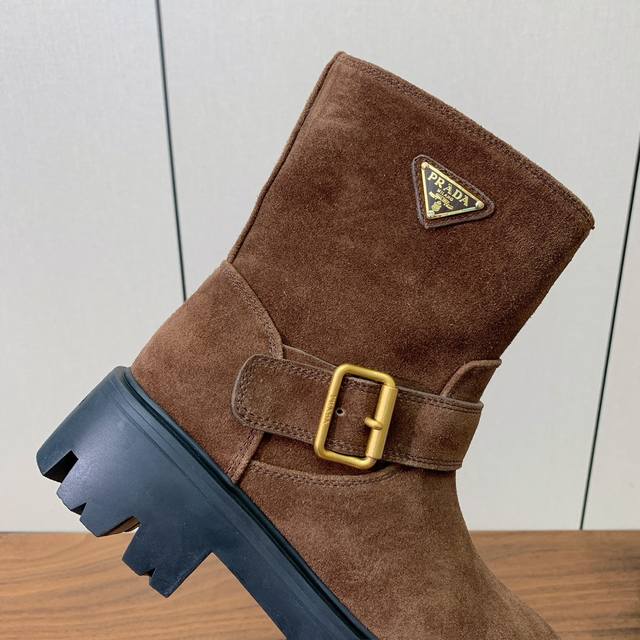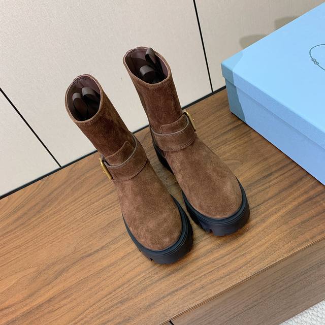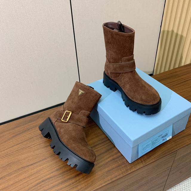 prad* 三角金属标短靴。涂珐琅三角形金属徽标装饰彰显品牌格调。惯用于精美鞋履的复古亮面皮革,打造别具现代气息的混搭设计。 DDD 材质:鞋面牛京、牛皮。牛皮内里及垫脚。带Logo 防滑鞋底。 DDD 码数:34-41 34、40、41订做不退换 DDD 批:牛京 。皮面 DDD
