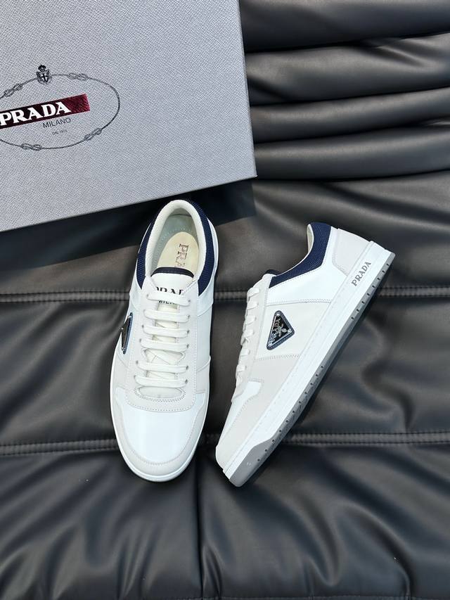 prad* 新品男士系带皮革休闲运动鞋,头层牛皮拼接透气帆布面料,非常有质感,重工打造,三角形品牌徽标点缀鞋身,头层羊皮内里.防滑减震花纹轻质厚底,实物和上脚更好看! Ddd psize:38-44 DDD