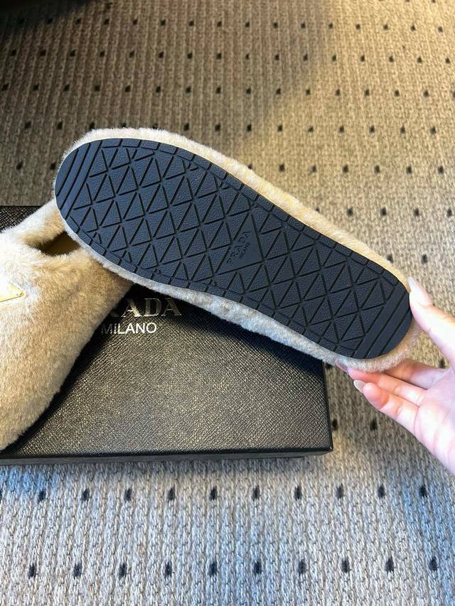 prad* 25Ss 三角标毛绒穆勒鞋 DDD 采用毛绒材质,触感柔软舒适,能为脚部提供温暖的穿着体验,适合秋冬季节。有米色、白色、黑色、深紫色、棕色等多种颜色可选,满足不同风格搭配需求,可适配多种穿搭场景。 DDD 属于穆勒鞋款式,无后跟设计,穿脱方便,兼具时尚感与实用性,既可以作为日常休闲鞋款,也能为造型增添时尚元素。 DDD 面料:羊毛 Ddd 内里:羊皮 Ddd 大底:Tpu大底 Ddd 跟高:2Cm Ddd Size:35-41码 40-41码订做不退换 DDD