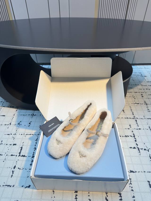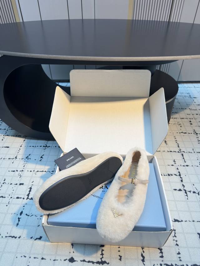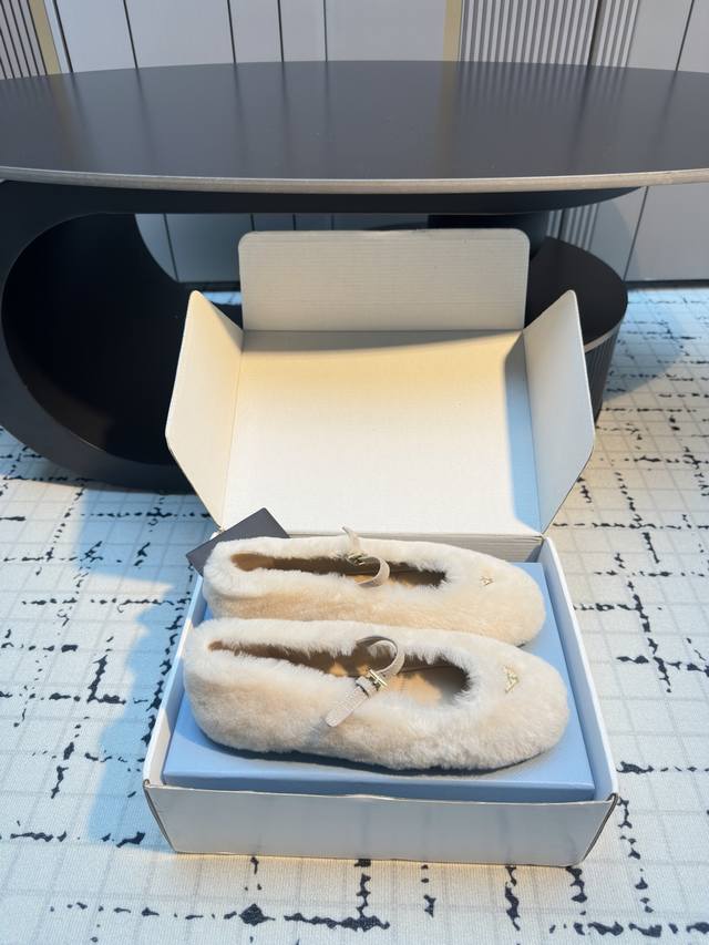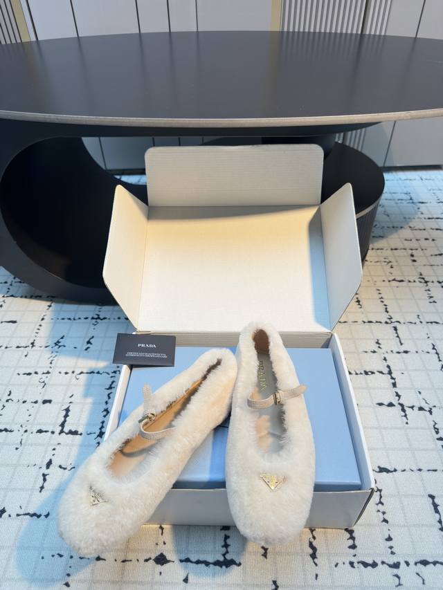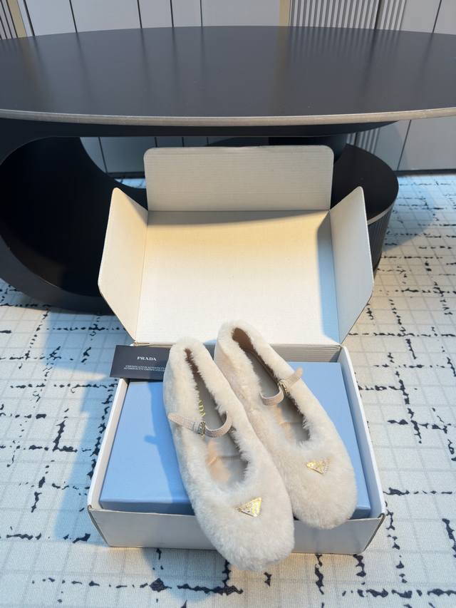 / prad*25新款玛丽珍毛毛鞋 顶级版本 这款芭蕾平底鞋采用锥形廓形,漆面羊皮革平添一抹精致,彰显优雅柔美魅力。采用圆头设计,搭配橡胶鞋底,且饰有涂珐琅三角形金