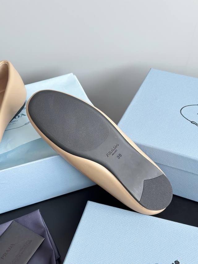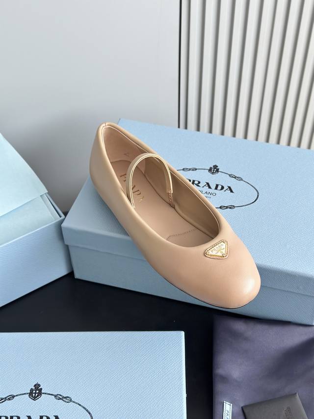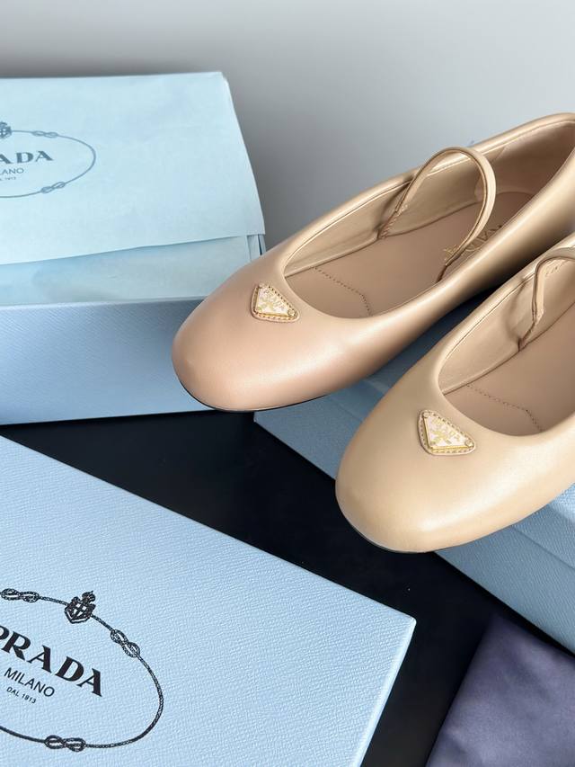 prad*25新款玛丽珍芭蕾舞平底鞋 顶级版本 这款芭蕾平底鞋采用锥形廓形,漆面羊皮革平添一抹精致,彰显优雅柔美魅力。采用圆头设计,搭配橡胶鞋底,且饰有涂珐琅三