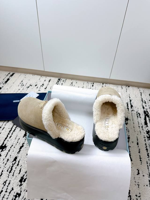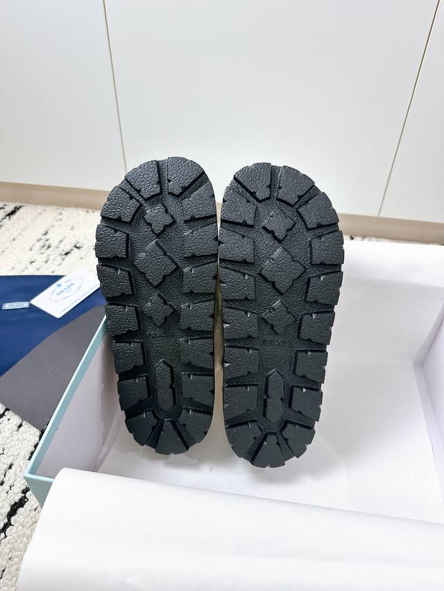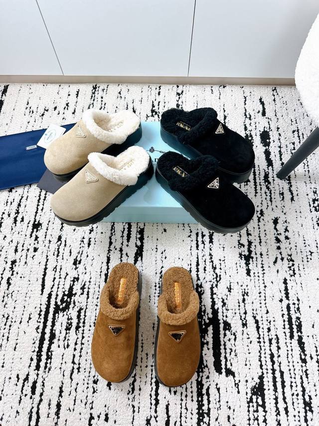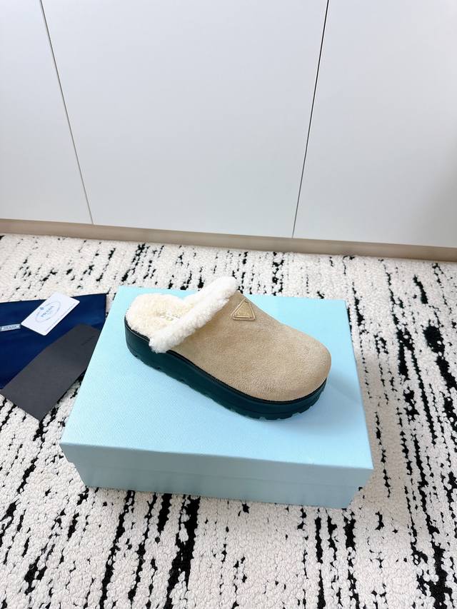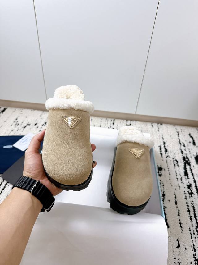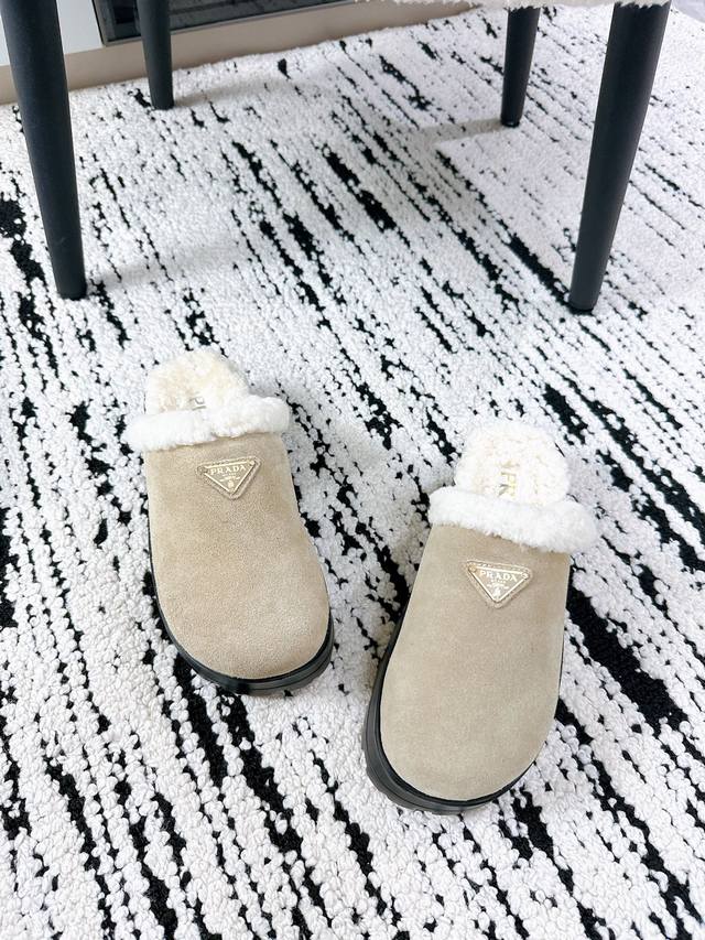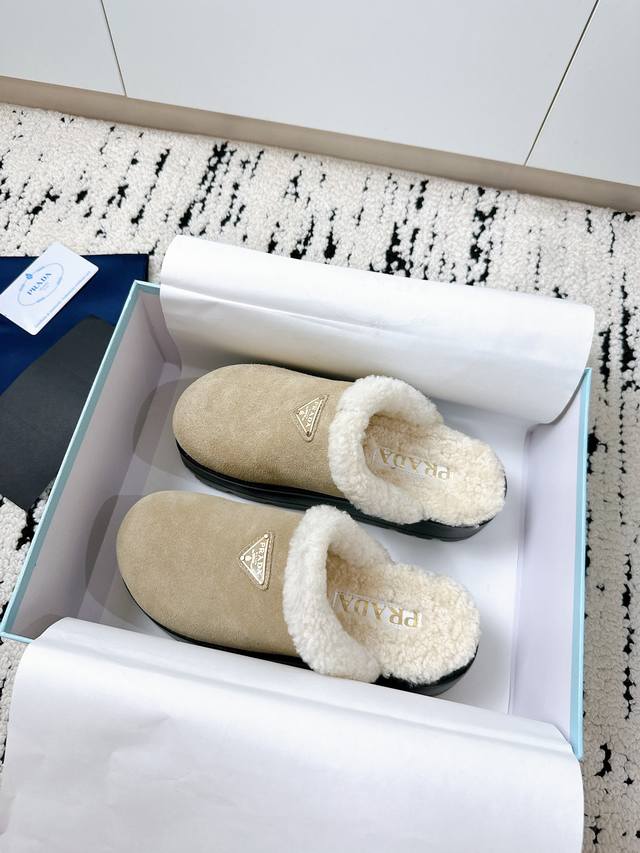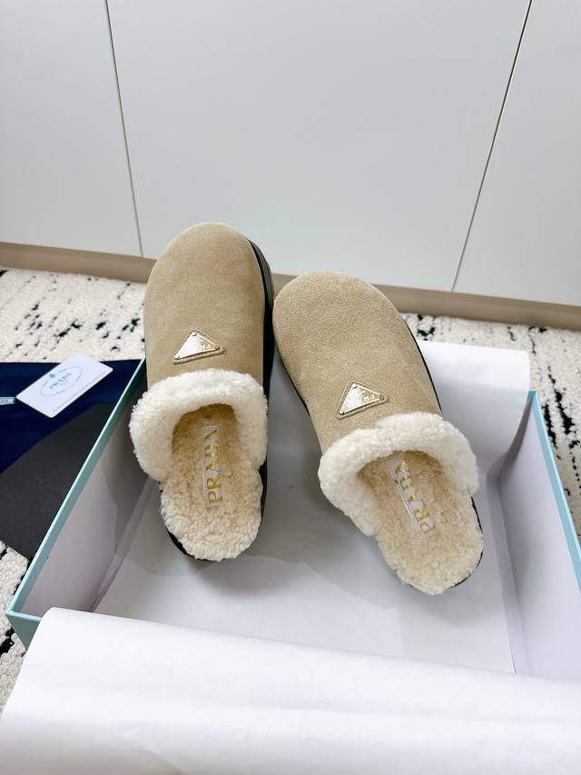 prada 2025春夏新款毛毛拖|代购级品质 轻松拿捏高级感 轻松拥有明星同款! 标志性三角标+复古沙滩鞋设计 经典元素碰撞,时髦感瞬间拉满,走到哪都是焦点!