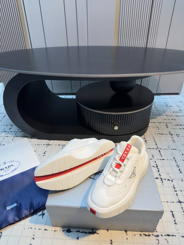 prada 25Ss春夏情侣款 厚底小白鞋 DDD 进口开边珠牛皮 进口小牛皮细节感跟好 三角标点缀,简单高级! DDD 关键上脚超显腿长,轻松拉长腿部显腿! DDD 女款:35 40 40定做不退不换 DDD 男款:40 45 45定做不退不换 DDD
