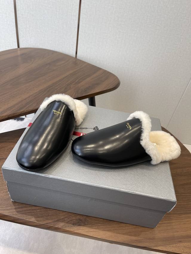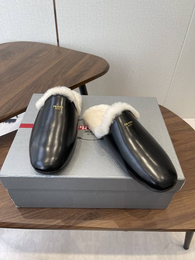 prada Fw 26Ss 秋冬最新升级 特级进口羊毛 New Arrival~ p家皮毛一体 毛拖新品 秋冬必备 保暖又时髦~氛围感拉满 原版开模橡胶大底 S