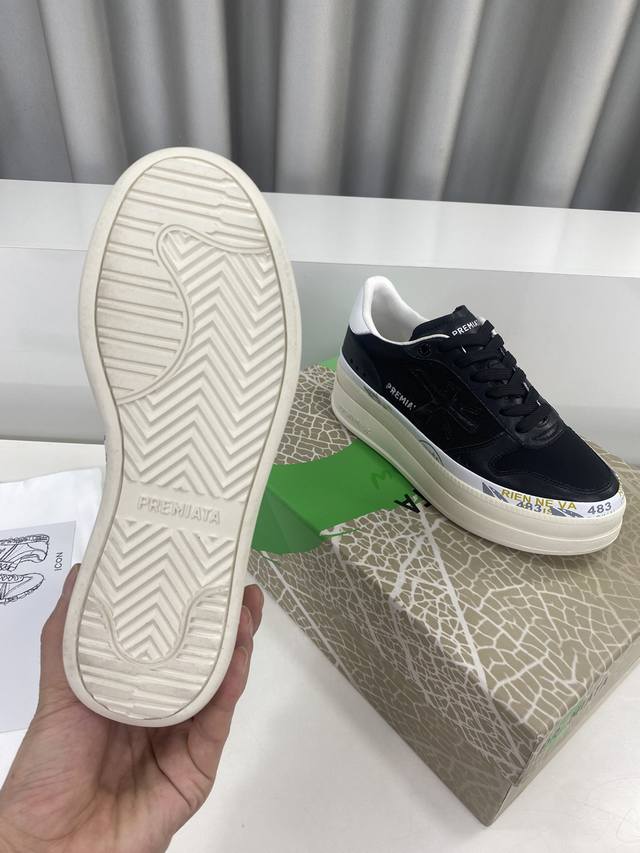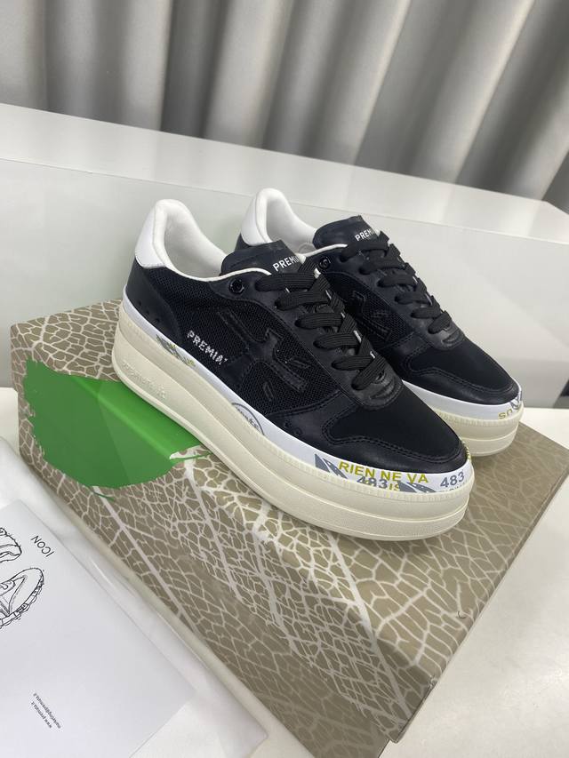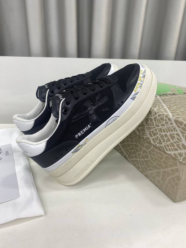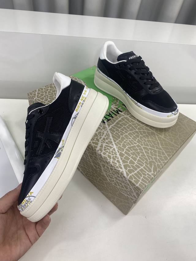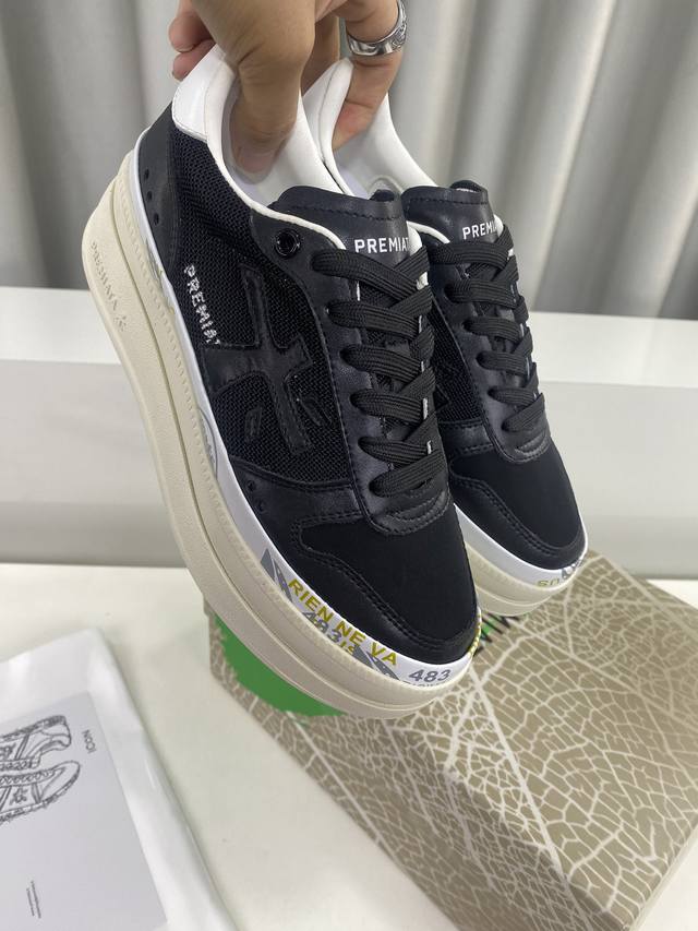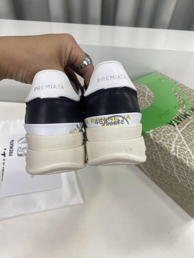 Premiata 普瑞米亚达 时尚、运动、休闲、慢跑、小白鞋。 普瑞米亚达意大利名品百年历史,所有工艺全手工打造,米“字一样的Logo简称米字鞋。完美的融合了传统的制鞋方法和高科技研发成果,设计出了独具特色的外观,打造出了完全贴合人们脚型的鞋履。上脚舒适美观。 鞋面:头层小牛皮。 内里:水染羊皮内里。 大底:原开模钢印,橡胶防滑大底。 码数:女35~41 40、41定做不退换 全套专柜原包装