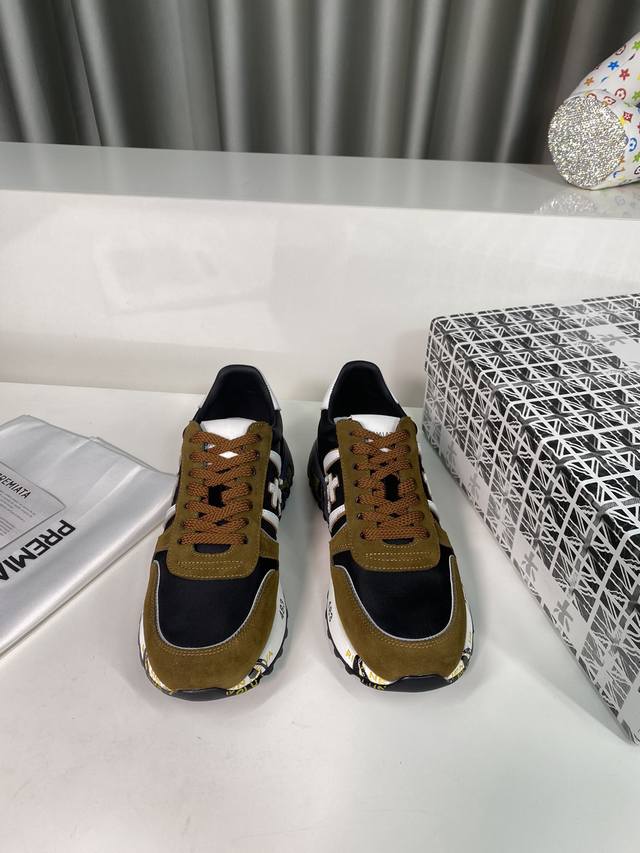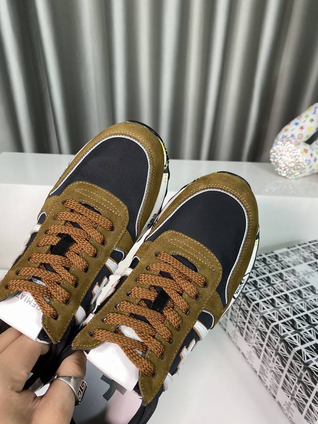 Premiata 普瑞米亚达 时尚、运动、休闲、慢跑、情侣鞋。 普瑞米亚达意大利名品百年历史,所有工艺全手工打造,米“字一样的Logo简称米字鞋。完美的融合了传统的制鞋方法和高科技研发成果,设计出了独具特色的外观,打造出了完全贴合人们脚型的鞋履。上脚舒适美观。 鞋面:牛反绒+牛皮+原版透气布 内里:水染羊皮里。 大底:Pu发泡大底超级轻盈舒适 码数:女35~39 34、40、定做不退换 男39~44 38、45、定做不退换 全套专柜原包装