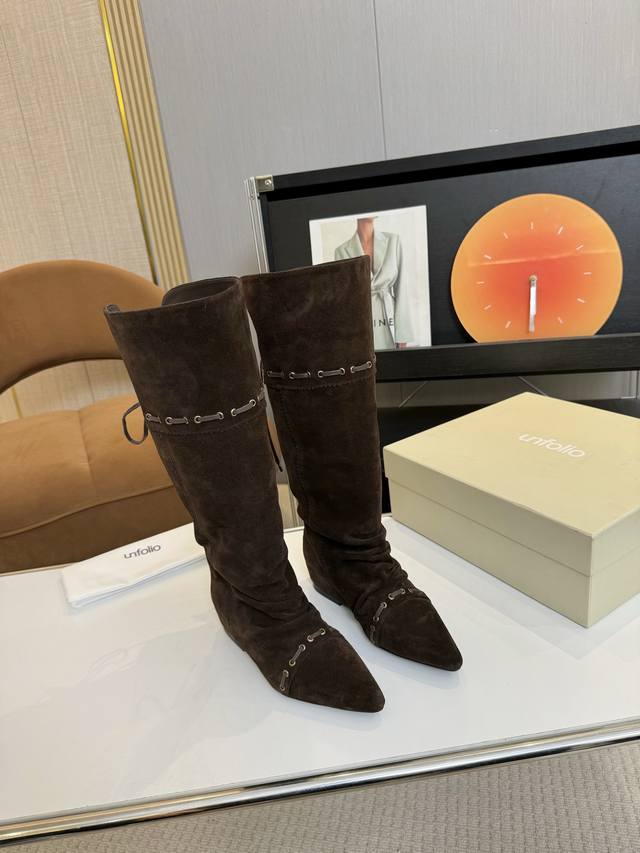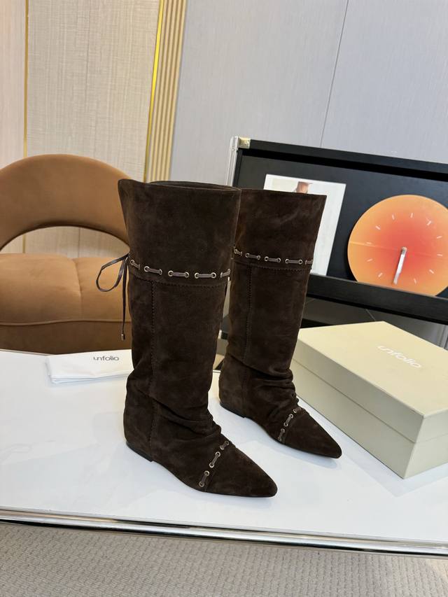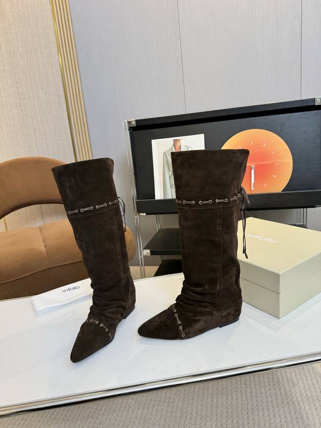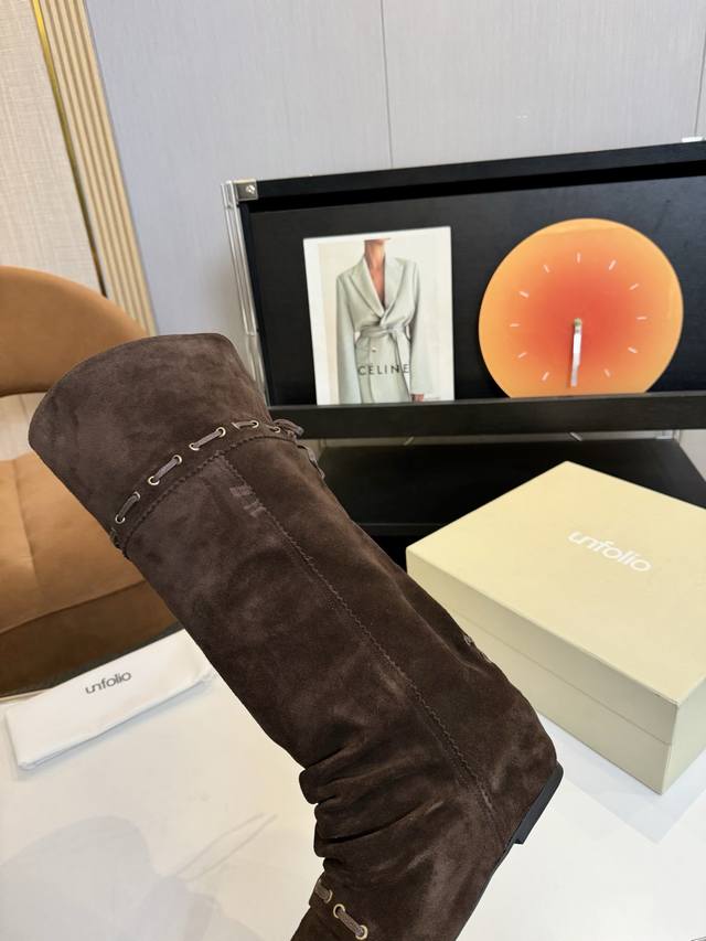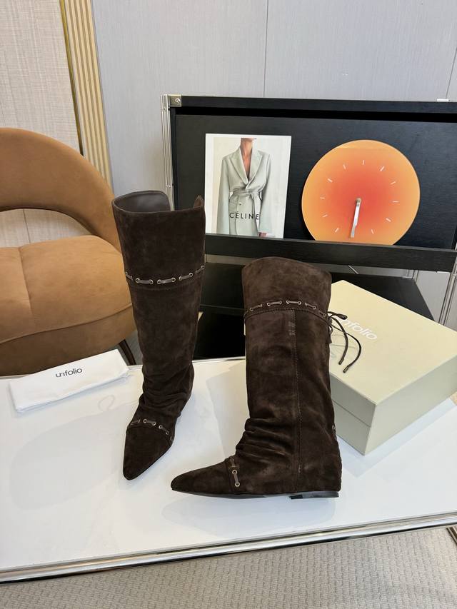 / Price: 品 牌: Unfolio 秋冬新款堆堆靴称之为今年最好看的堆堆靴,毫不过分,复古百搭,慵懒简约 面料:对版牛反绒 牛皮 内里:莱卡布内里 内增高: