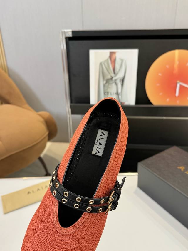 Price: 品 牌:Alaia 阿莱亚24S新品复古扣带玛丽珍鞋芭蕾舞鞋 走秀款平底芭蕾舞鞋章小蕙同款甜酷芭蕾风,人气超高的一款芭蕾舞鞋,浪漫又迷人舒适百搭满满的少女风 既摩登又复古的味道 非常的简约大气 不管是半身裙 连衣裙还是牛仔裤 它都能成为点睛之笔! Go 材质: 鞋面:进口编织 内里:进口混种羊皮 大底:原版开模橡胶防滑大底 码数:35-39 40 41订做不退换