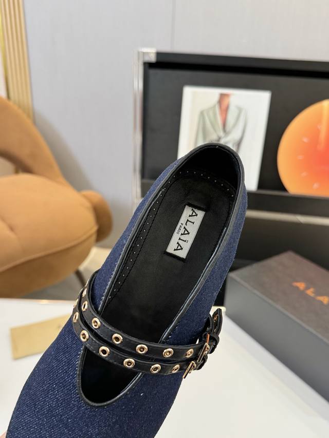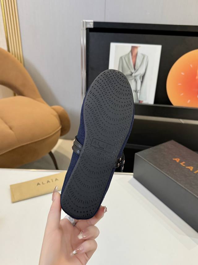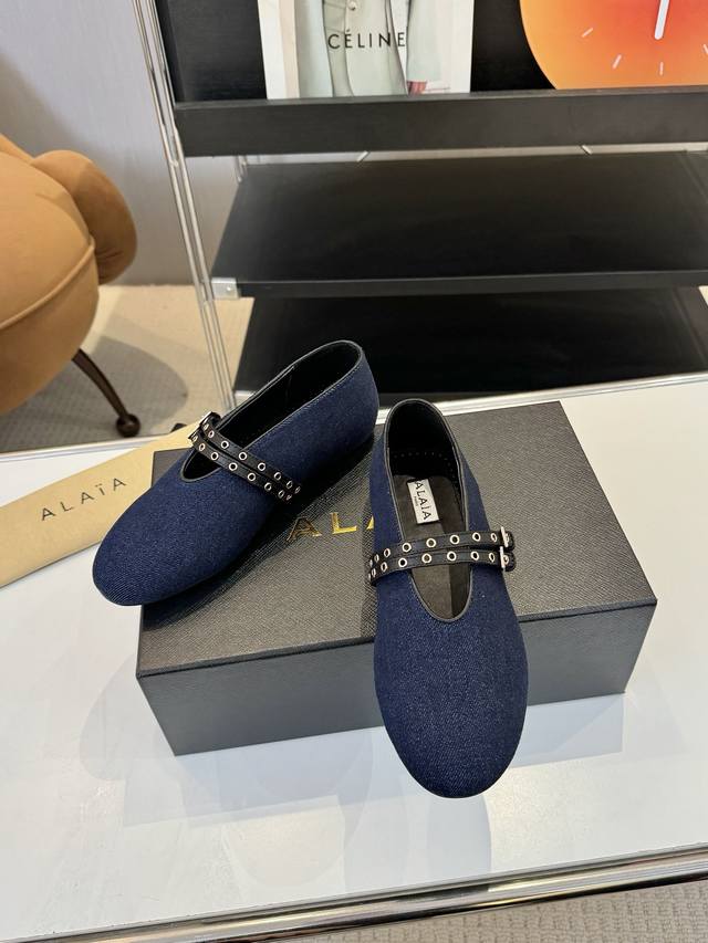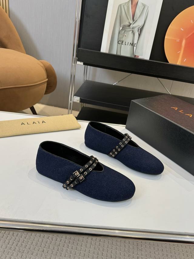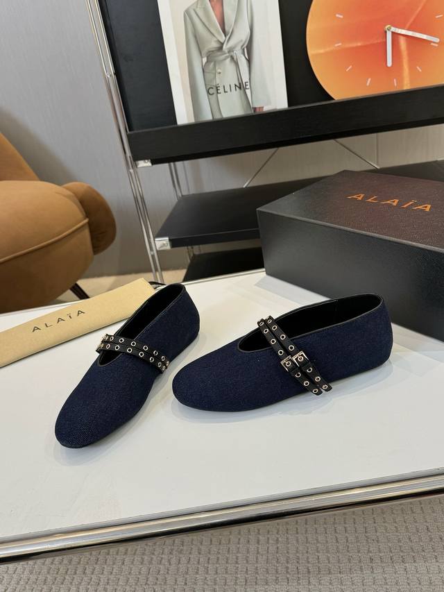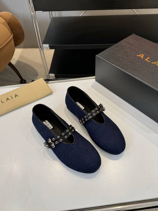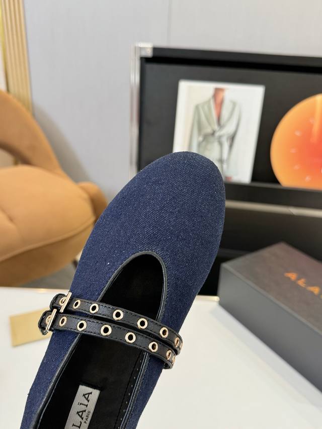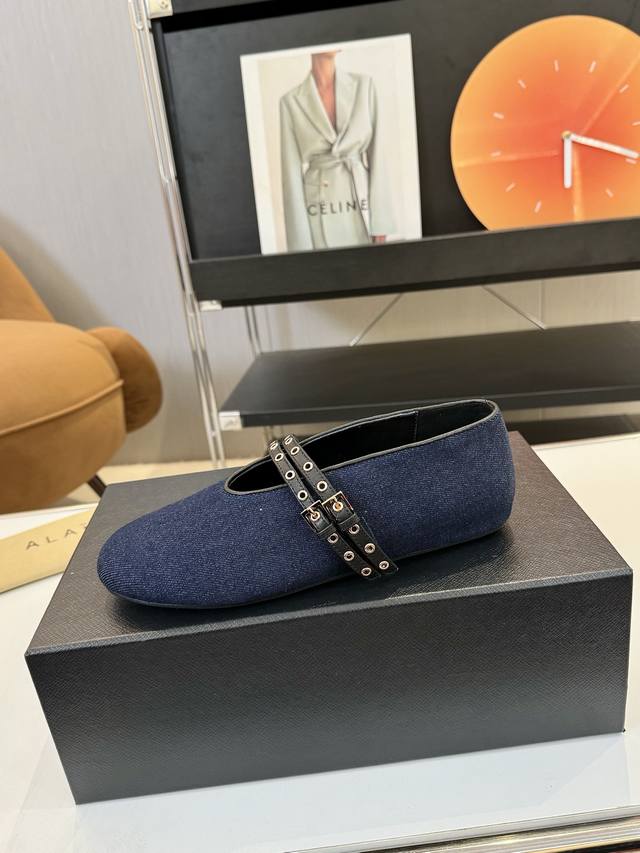 Price: 品 牌:Alaia 阿莱亚24S新品复古扣带玛丽珍鞋芭蕾舞鞋 走秀款平底芭蕾舞鞋章小蕙同款甜酷芭蕾风,人气超高的一款芭蕾舞鞋,浪漫又迷人舒适百搭满满的少女风 既摩登又复古的味道 非常的简约大气 不管是半身裙 连衣裙还是牛仔裤 它都能成为点睛之笔! Go 材质: 鞋面:牛仔布 内里:进口混种羊皮 大底:原版开模橡胶防滑大底 码数:35-39 40 41订做不退换