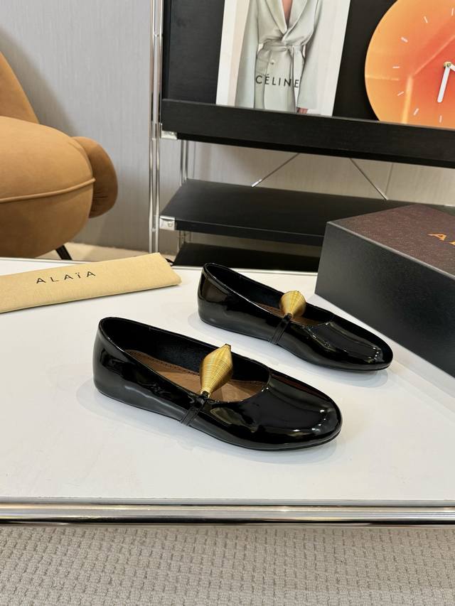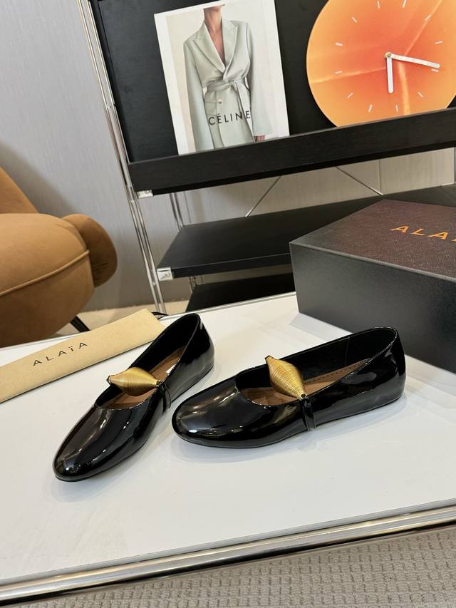 Price: 品 牌:Alaia 阿莱亚24S新品复古扣带玛丽珍鞋芭蕾舞鞋 走秀款平底芭蕾舞鞋章小蕙同款甜酷芭蕾风,人气超高的一款芭蕾舞鞋,浪漫又迷人舒适百搭满满的少女风 既摩登又复古的味道 非常的简约大气 不管是半身裙 连衣裙还是牛仔裤 它都能成为点睛之笔! Go 材质: 鞋面:进口漆皮 内里:进口混种羊皮 大底:原版开模橡胶防滑大底 码数:35-39 40 41订做不退换