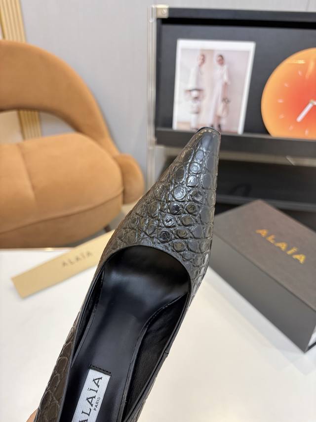 price: DDD 品 牌:Alaia DDD 阿莱亚25新款尖头镂空单鞋 DDD 该款尖头单鞋,采用几何镂空露肤设计,搭配10.5Cm鞋跟,更加拉长腿部线条比例; 弹力绒面皮山羊皮制成,轻松打造摩登型格。 DDD 腿长作弊神器 心细高跟物理延长腿部线条 DDD 黑色系靴筒视觉瘦腿双Buff叠满拉长腿部线条 DDD 鞋面:蛇纹牛皮 DDD 内里垫脚:羊皮 DDD 大底:真皮滴胶大底 DDD 跟高:10.5Cm DDD Size:35-39 40.41.42定做不退换 DDD