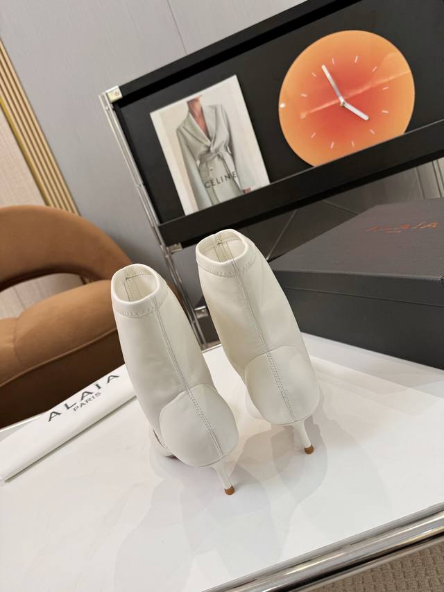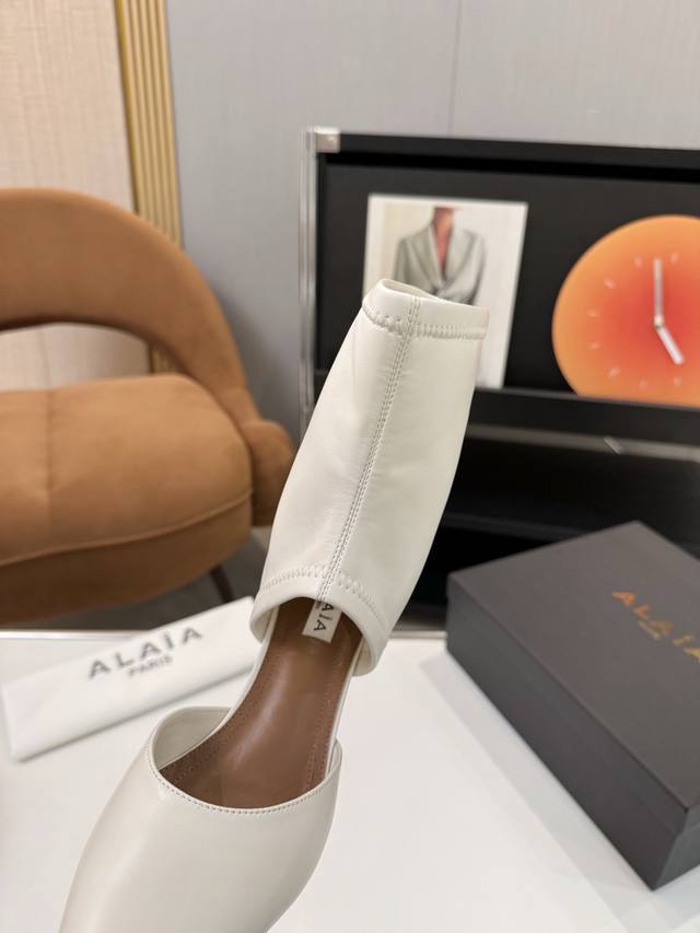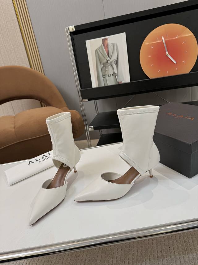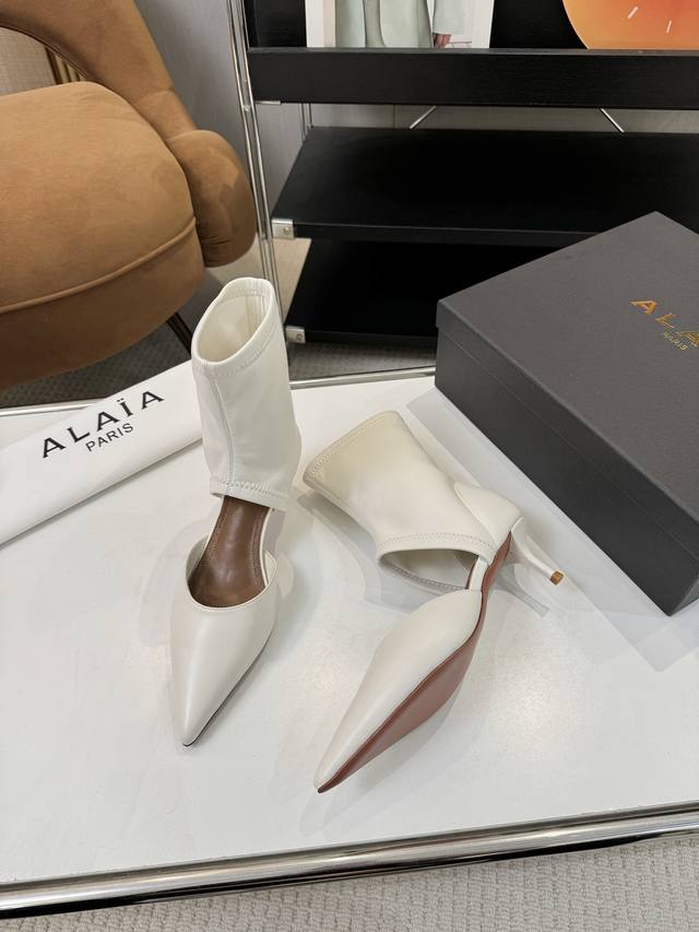 / Price: 品 牌:Alaia 阿莱亚25新款箭头弹力短靴中空凉鞋 该款尖头踝靴,采用几何镂空露肤设计,搭配55毫米鞋跟,更加拉长腿部线条比例; 弹力绒面皮山