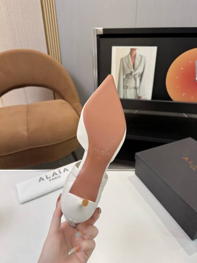 Price: 品 牌:Alaia 阿莱亚25新款箭头弹力短靴中空凉鞋 该款尖头踝靴,采用几何镂空露肤设计,搭配55毫米鞋跟,更加拉长腿部线条比例; 弹力绒面皮山羊皮制成,轻松打造摩登型格。 腿长作弊神器 心细高跟物理延长腿部线条 黑色系靴筒视觉瘦腿双Buff叠满拉长腿部线条 鞋面:羊猄皮 牛皮, 内里垫脚:羊皮, 大底:意大利真皮大底 跟高:5.5Cm Size:35-39 40.41 定做不退换