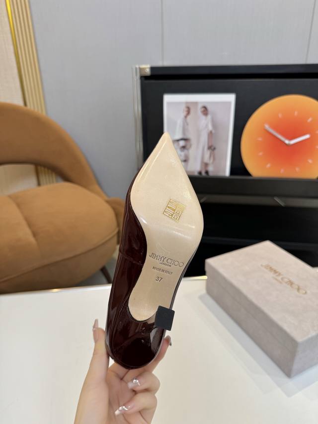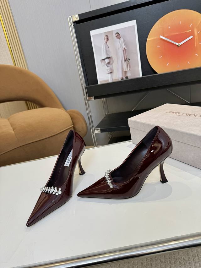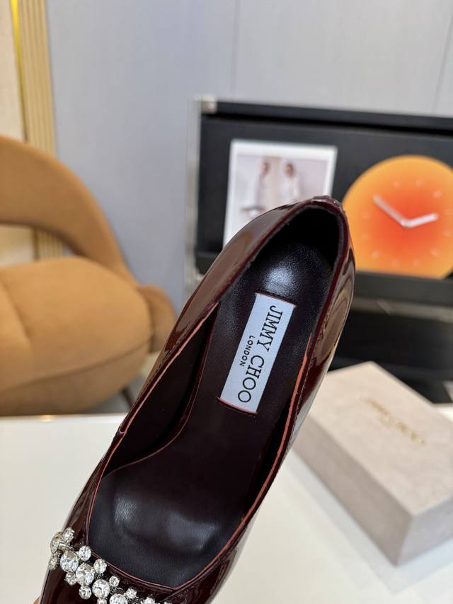 Price: 品 牌:Jimmy Choo 吉米周 2025早秋新品高跟鞋 宋茜同款 邂逅奢华 不仅仅是一双鞋子,更是一件艺术品,它承载着精湛工艺与时尚美学,是每位追求品质与风格的女性鞋柜中不可或缺的珍藏。穿上它,开启属于你的时尚传奇之旅,让每一步都踏出璀璨星光! 水钻在脚背勾勒迷人的弧度 简直美爆了 度环绕仙气感 华丽又不浮夸!! 面料: 牛漆皮 内里: 柔软羊皮 大底: 意大利真皮大底 跟高: 9.0Cm Size: #35-42 40.41.42定做不退换