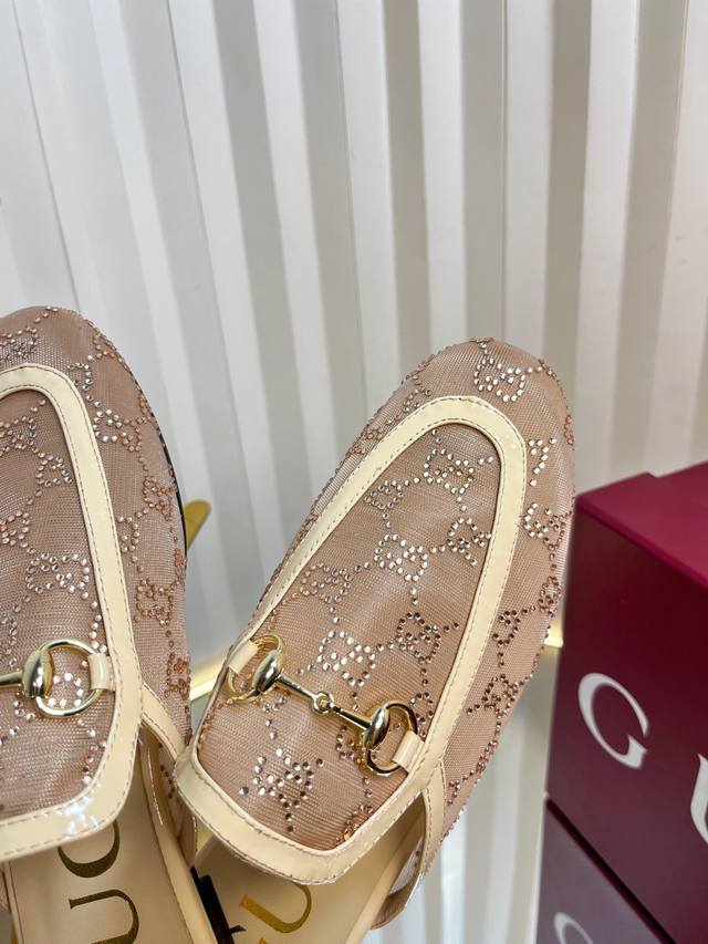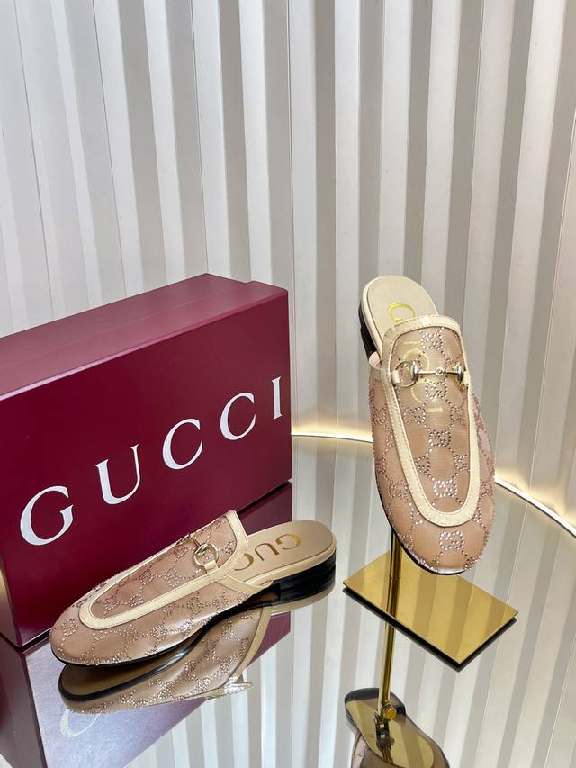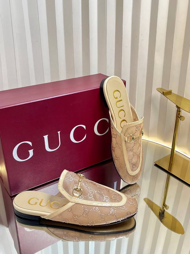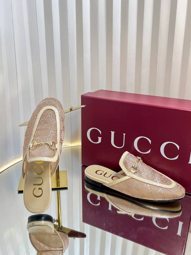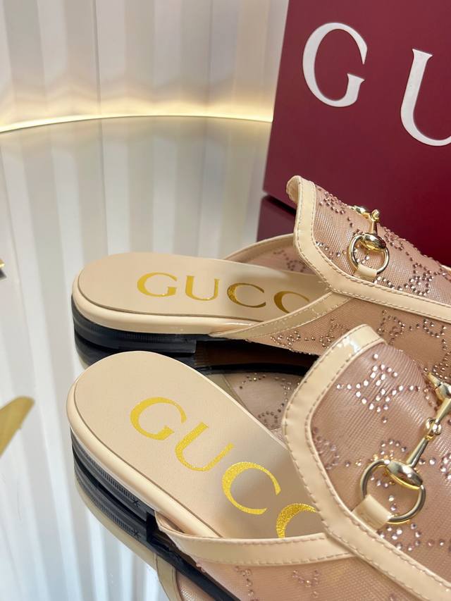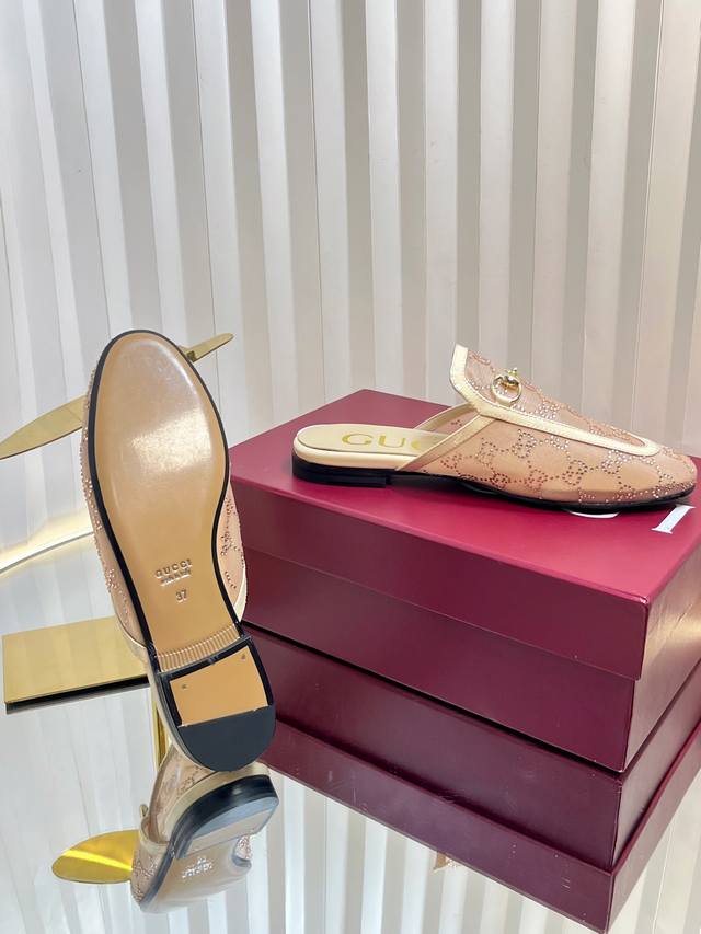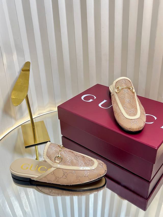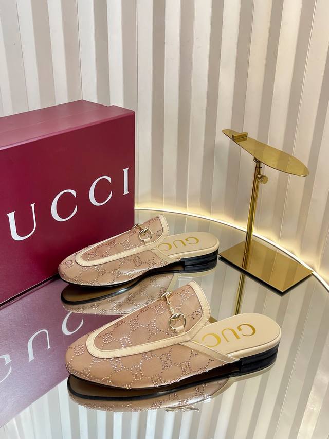 Princetown系列女士网纱水晶钻半拖鞋Princetown系列拖鞋采用品牌经典的网纱水晶钻,配以标志性的金色调马衔扣,呈现震撼效果。原版定制网纱水晶钻 内里定制羊皮 真皮大底 码数34-42 34 40 41 42定做不退换