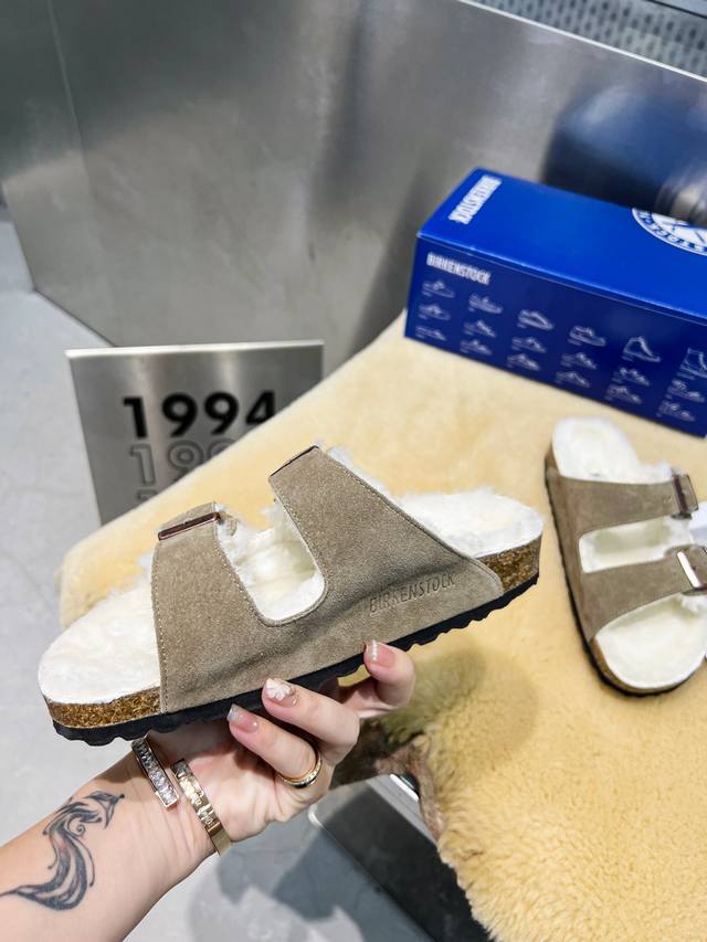 r 勃肯 22秋冬 最新 羊毛皮带拖