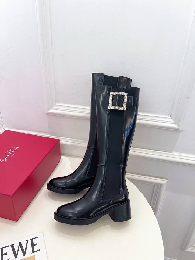 / R 25 2025秋冬新品方形钻扣粗跟切尔西长靴 系列上新~ Rv 专柜主打 原版购入 经典鞋型 极具摩登范儿 代购级别 日常搭配和重要场合搭配的女神款绝对要入