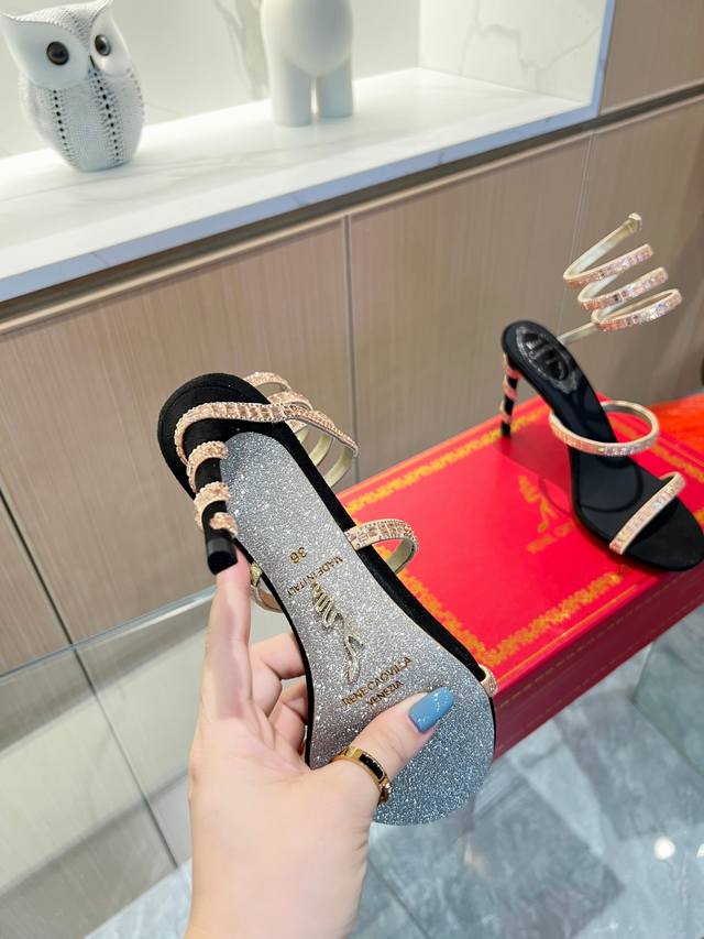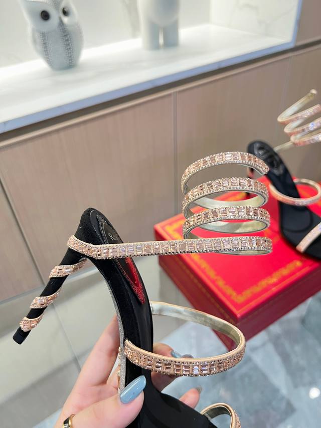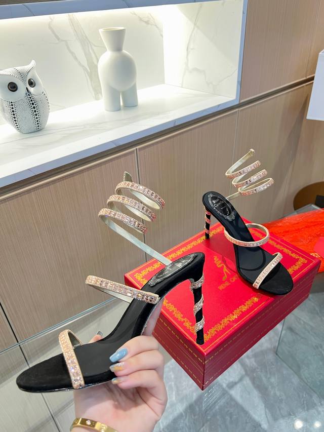 R C 最新Rc蛇形爆红Cleo系列,水晶缠绕脚环高跟凉鞋。简约却暗藏玄机,一点点灯光,整个鞋面波光粼粼,熠熠生辉。无论是在温暖热闹的派对,还是昏暗暧昧的场合,都轻松拿捏 DDD 高版本 春夏新款,魅惑华丽的顶级硬货,年度重量级镇店精品! DDD 面料:进口真丝+克里奥水钻 DDD 内里:进口丝绸羊皮内里垫脚 DDD 大底:原版Blingbling闪银真皮底 DDD 跟高:9.5Cm左右 DDD Color:金钻、白钻 DDD Size :35-39 34 40 41 42 43定做不退换 标准码 DDD
