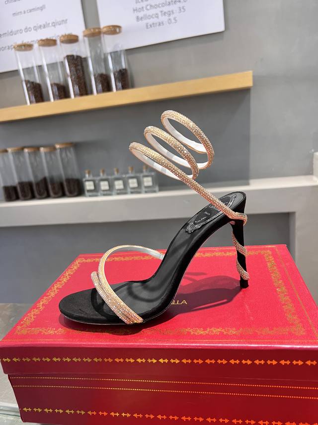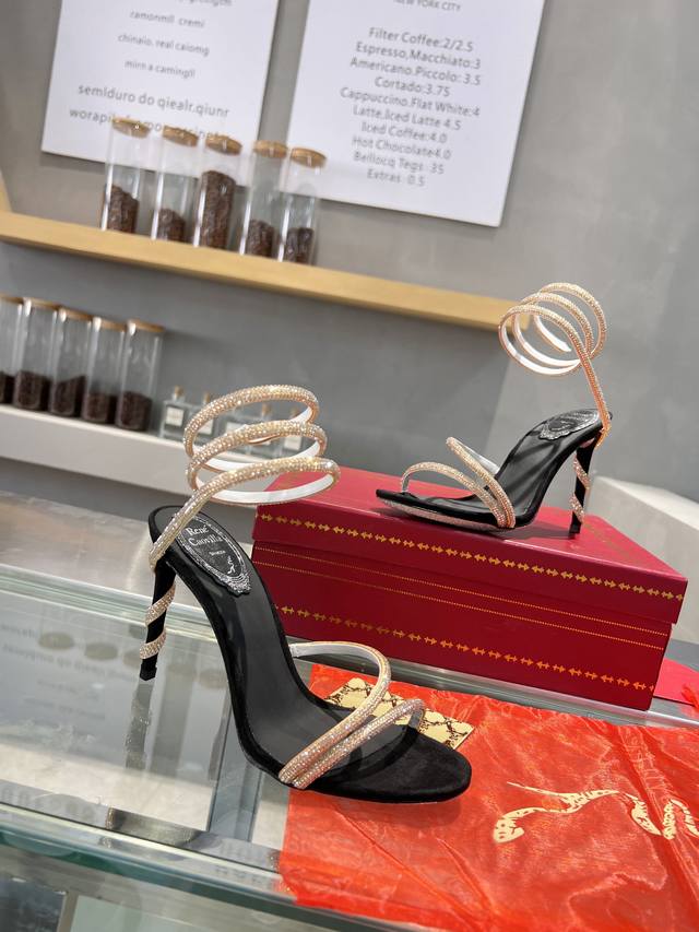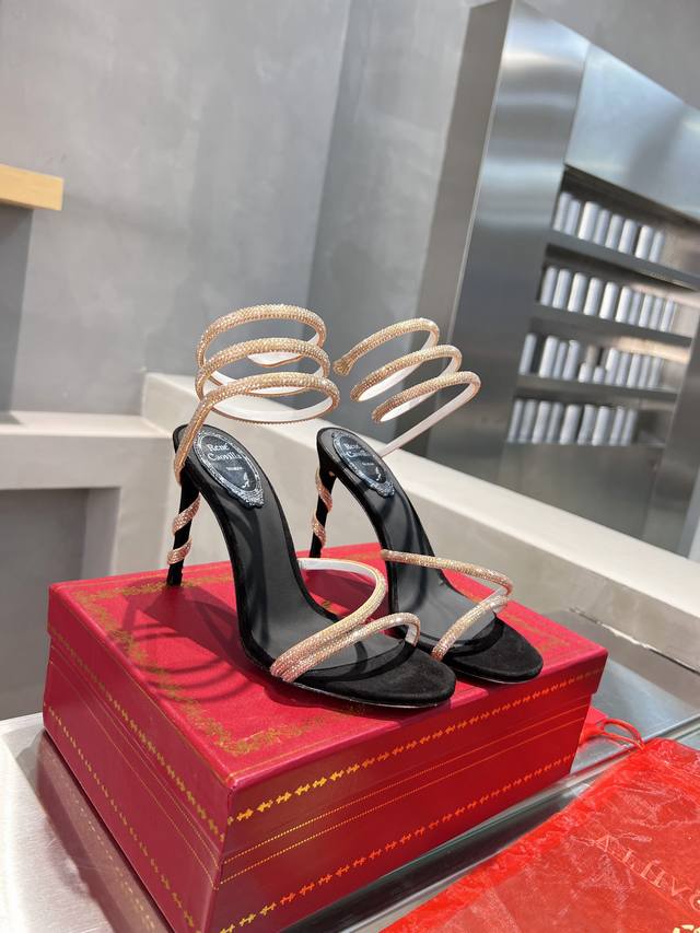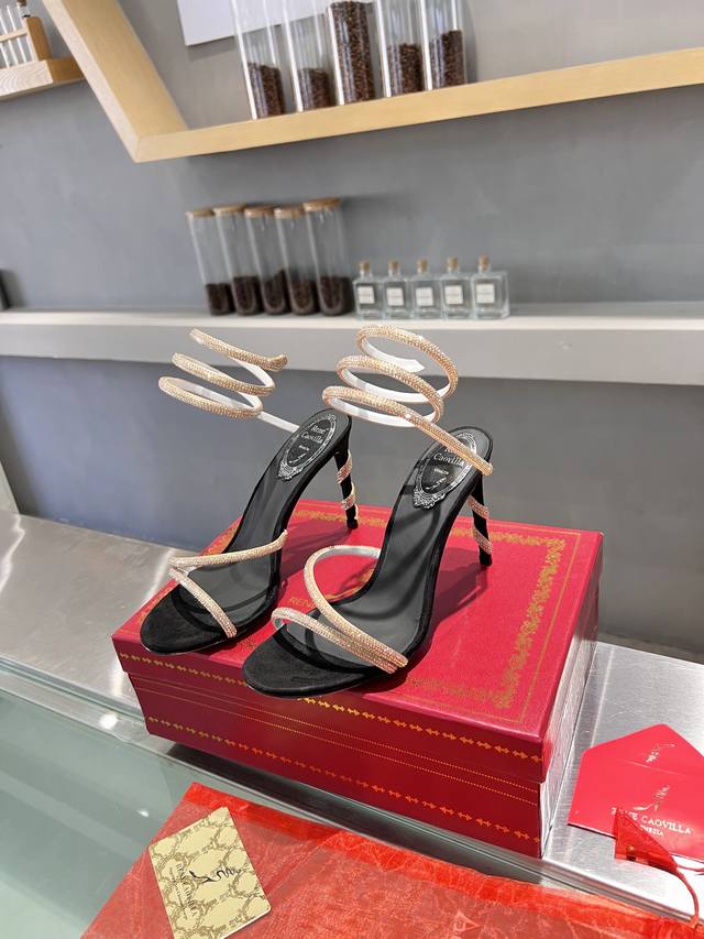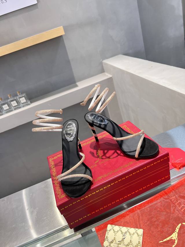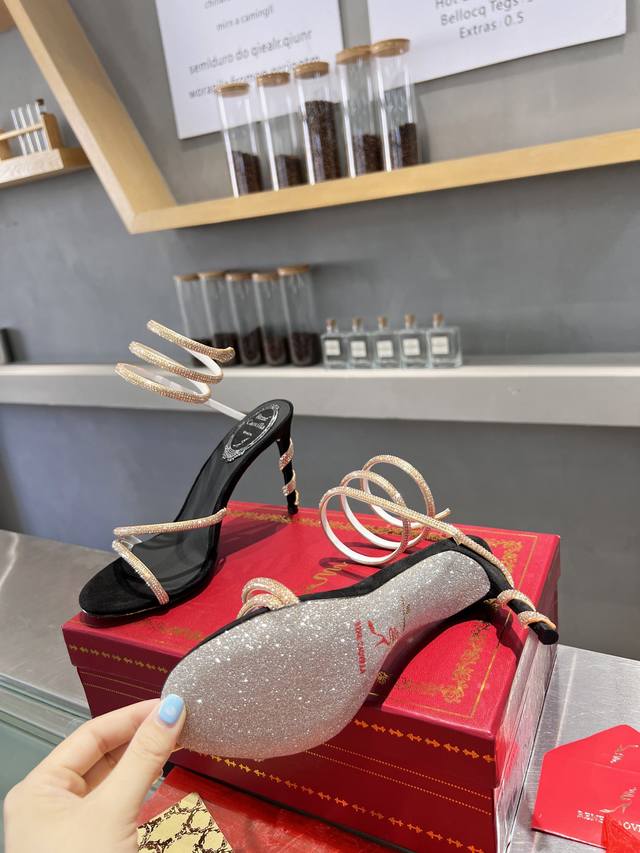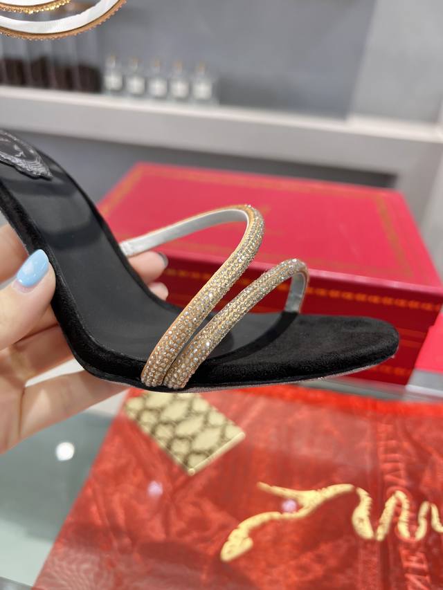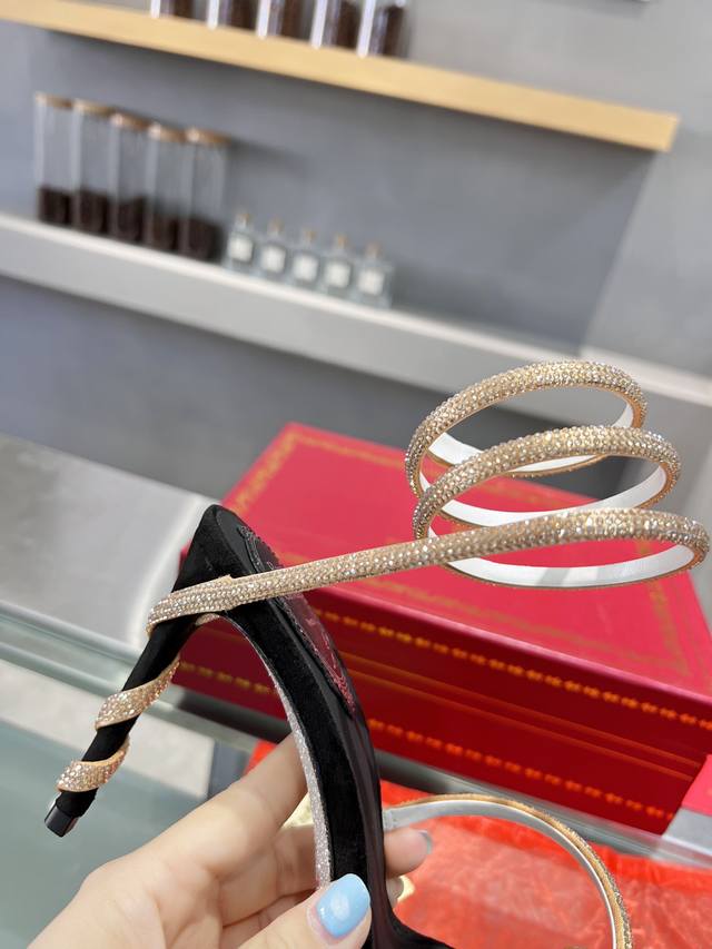 R C 重工Rc蛇形爆红Cleo系列,水晶缠绕脚环高跟凉鞋。简约却暗藏玄机,一点点灯光,整个鞋面波光粼粼,熠熠生辉。无论是在温暖热闹的派对,还是昏暗暧昧的场合,都轻松拿捏 DDD 高版本 春夏新款,魅惑华丽的顶级硬货,年度重量级镇店精品! DDD 面料:进口真丝+克里奥水钻 DDD 内里:进口丝绸羊皮内里垫脚 DDD 大底:原版Blingbling闪银真皮底 DDD 跟高:9.5Cm左右 DDD Color:金色、黑色、银色、白色 DDD Size :35-39 34 40 41 42 43定做不退换 标