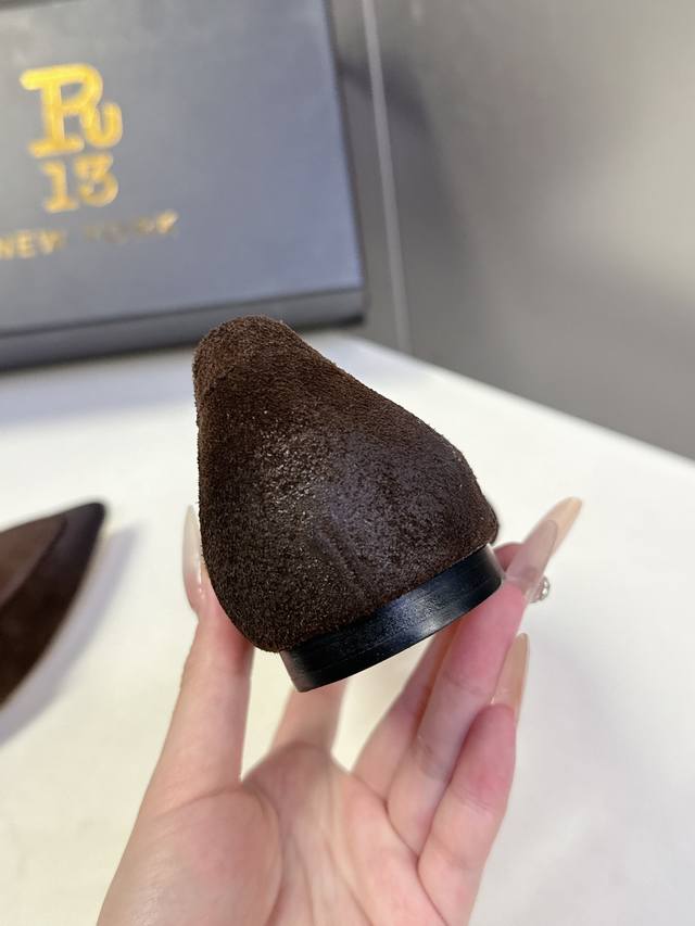 FFF R13潮牌2026春夏最新走秀款小皮鞋 超多明星网红种草 简易复古五金扣饰尖头平跟单鞋 一年四季可都以穿的小皮鞋 不会成鞋为柜里的设摆, 酷女孩必备 超腿显细 配搭无毫鸭梨 髦时又搭百Ins 鞋面材质进为口小牛皮 做旧牛反绒 内里垫脚水染牛皮意大利进口真皮大底Size:35-42 40 41 42 定不退换 DDD