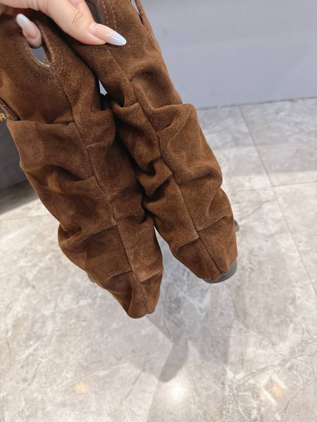 R13 新品R13 这款西部靴 复古麂皮褶皱设计超吸睛 尖头造型拽酷拉满 上脚瞬间化身街头时髦精 轻松拿捏美式复古腔调~鞋面:进口麂皮 内里:进口牛皮 大底:进口大底 跟高: 7Cm Size: 35-39 40.41.42定