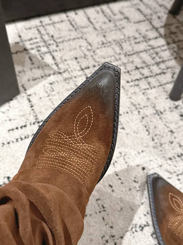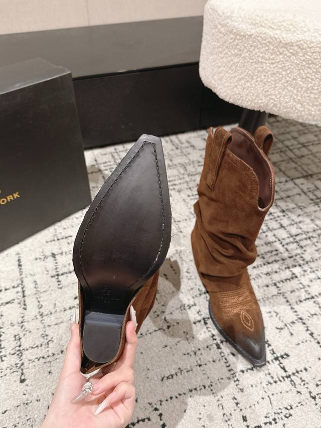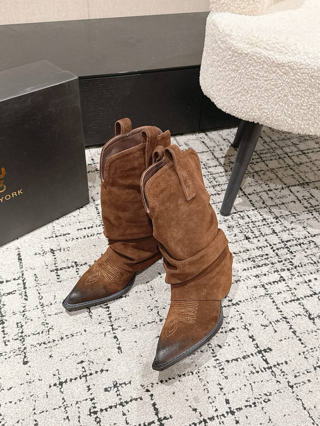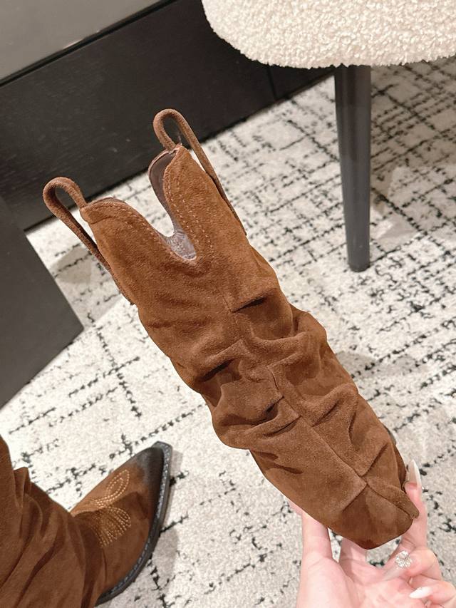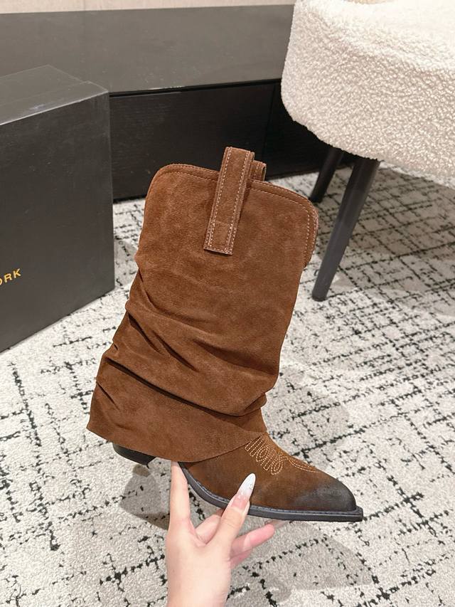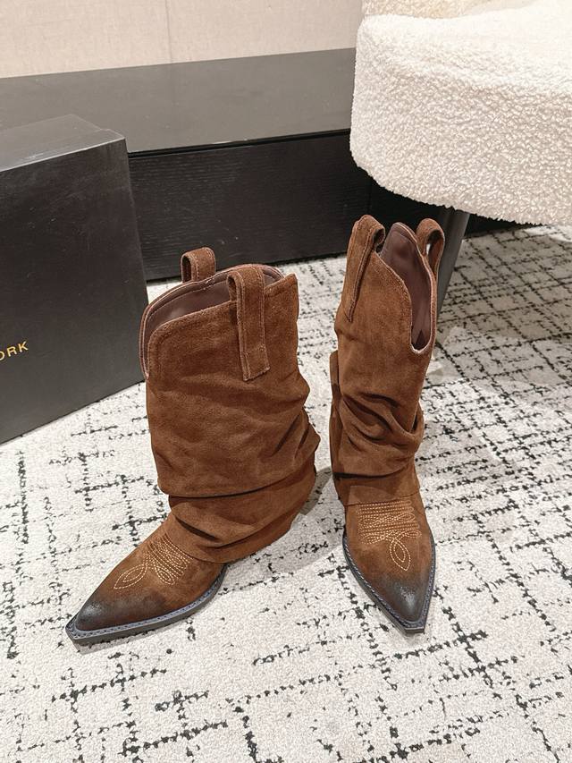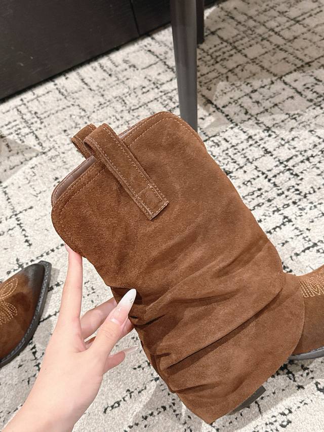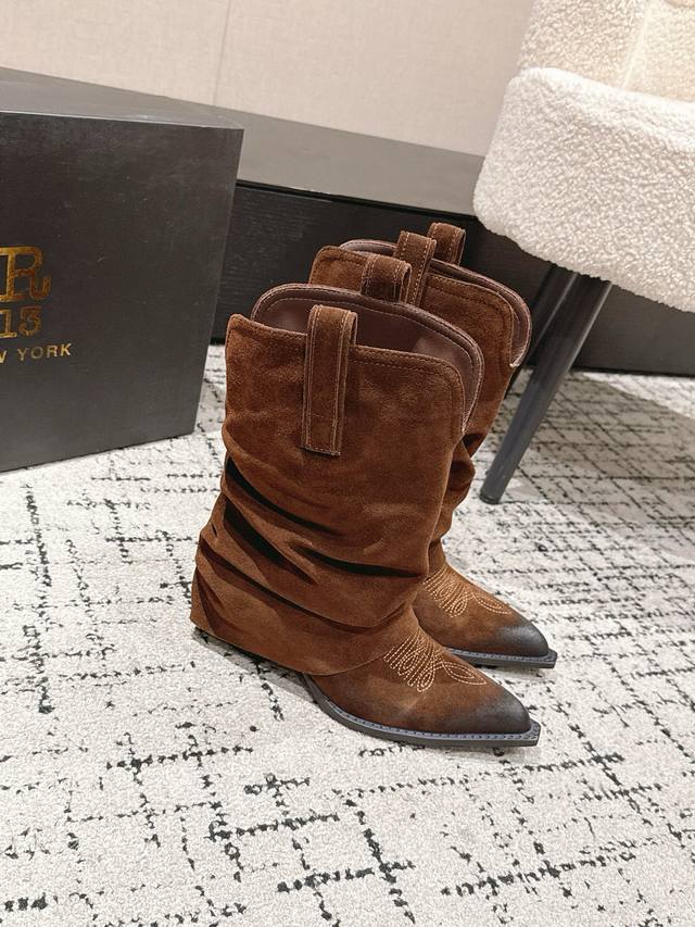 R13 25 秋冬新品新品复古 西部靴 复古麂皮褶皱设计超吸睛 尖头造型拽酷拉满 上脚瞬间化身街头时髦精 轻松拿捏美式复古腔调 鞋面:进口麂皮 内里:进口牛皮 大底:进口大底 跟高: 7Cm Size: #35-42 40.41.42定做