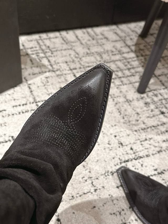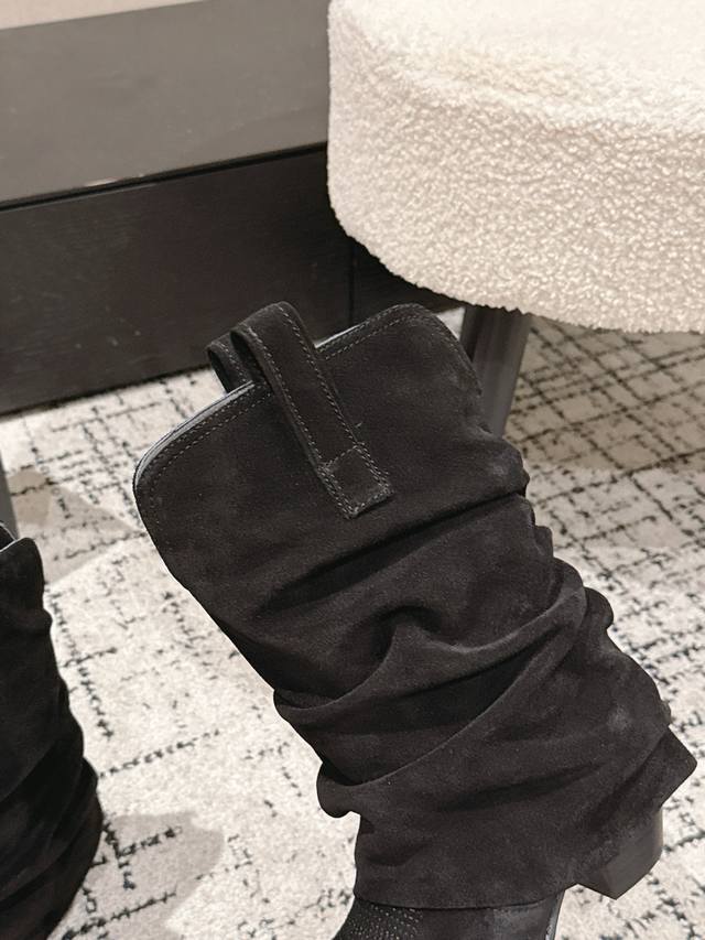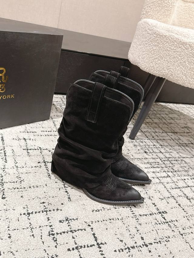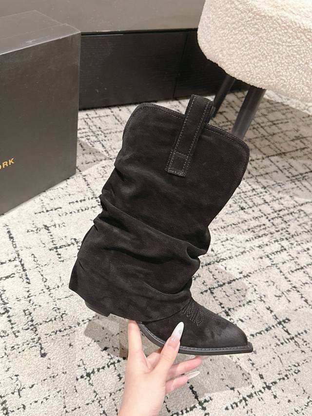 R13 25 秋冬新品新品复古 西部靴 复古麂皮褶皱设计超吸睛 尖头造型拽酷拉满 上脚瞬间化身街头时髦精 轻松拿捏美式复古腔调 鞋面:进口麂皮 内里:进口牛皮 大底:进口大底 跟高: 7Cm Size: #35-42 40.41.42定做