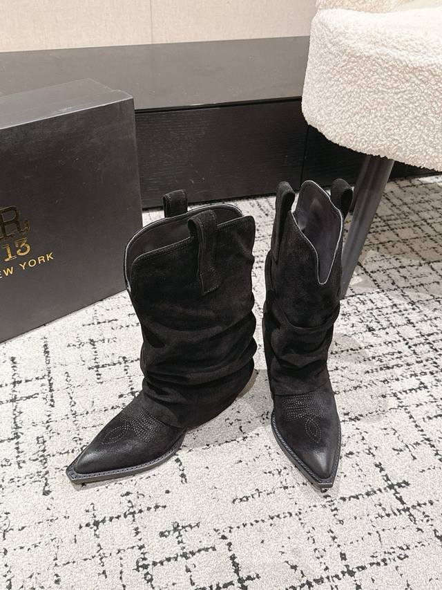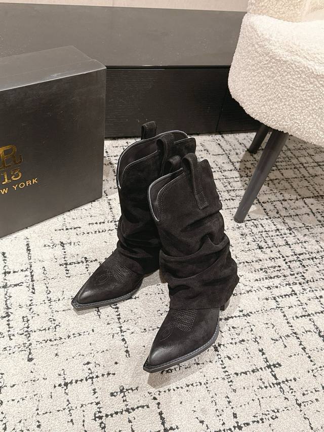 R13 25 秋冬新品新品复古 西部靴 复古麂皮褶皱设计超吸睛 尖头造型拽酷拉满 上脚瞬间化身街头时髦精 轻松拿捏美式复古腔调 鞋面:进口麂皮 内里:进口牛皮