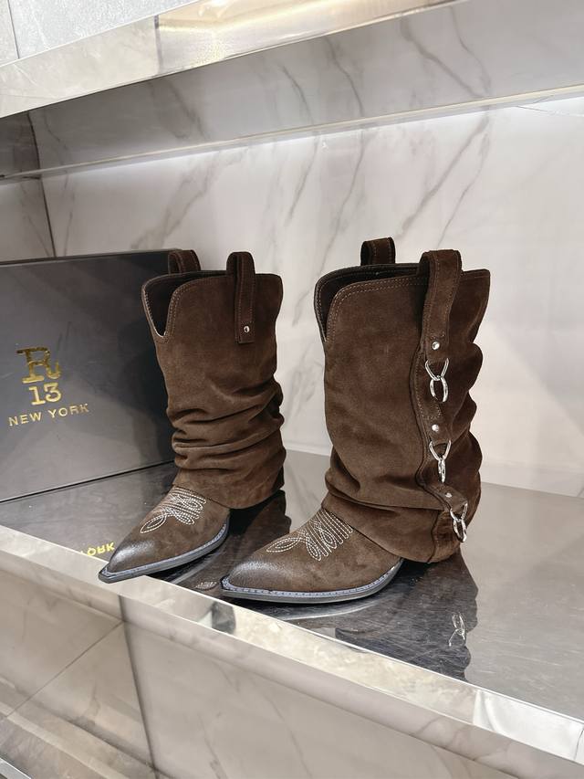 / R132025秋冬新款堆堆靴,美靴来临,一个以朋克摇滚为内核和审美的品牌,堆堆靴美出新高度,显腿细又不失慵懒酷感,酷飒有型对版牛皮 高丝光羊京面料,牛皮内里,意