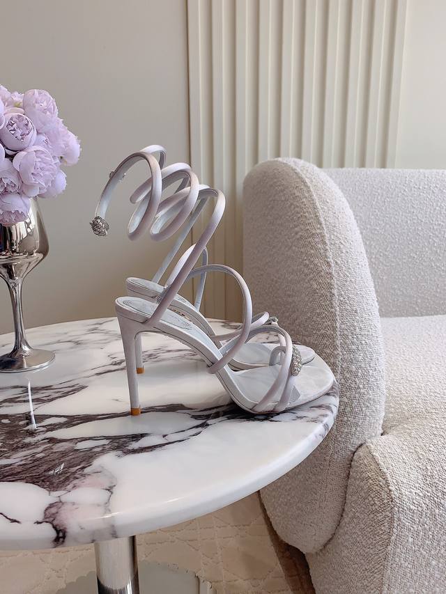 Ren* Caovill*新款蛇形水钻高跟凉鞋 永远仙气十足的蛇形带环绕脚踝 精致闪耀 展现独特的细节与耀眼的印记~~