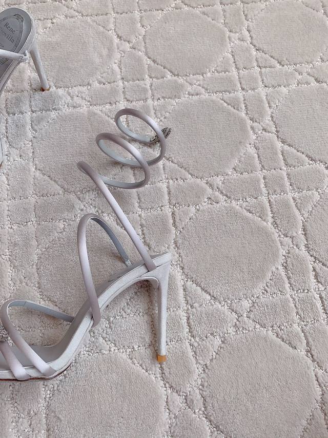 / Ren* Caovill*新款蛇形水钻高跟凉鞋 永远仙气十足的蛇形带环绕脚踝 精致闪耀 展现独特的细节与耀眼的印记~~ 鞋面真丝 内里垫脚羊皮 意大利真皮大底