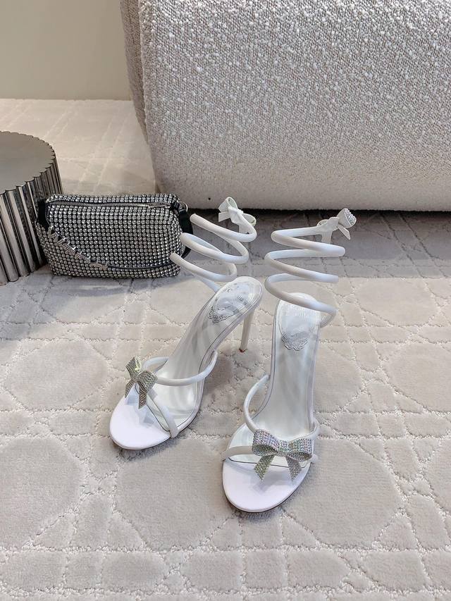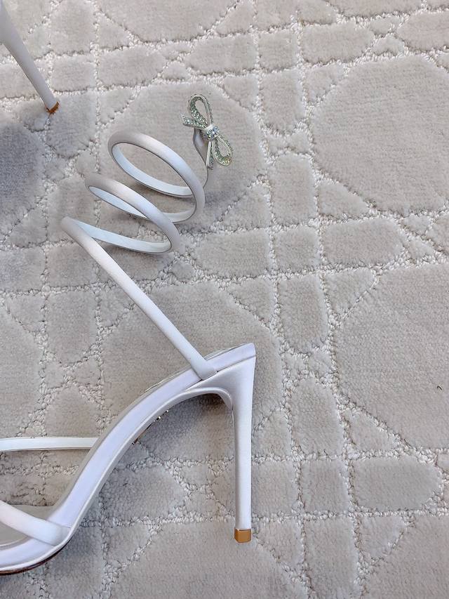 / Ren* Caovill* 经典蛇形缠绕水钻镶嵌高跟凉鞋 水钻蝴蝶结点缀增加甜美气息 鞋面真丝 搭配超闪水钻 内里垫脚羊皮 原版一致闪银真皮大底 跟高:9Cm