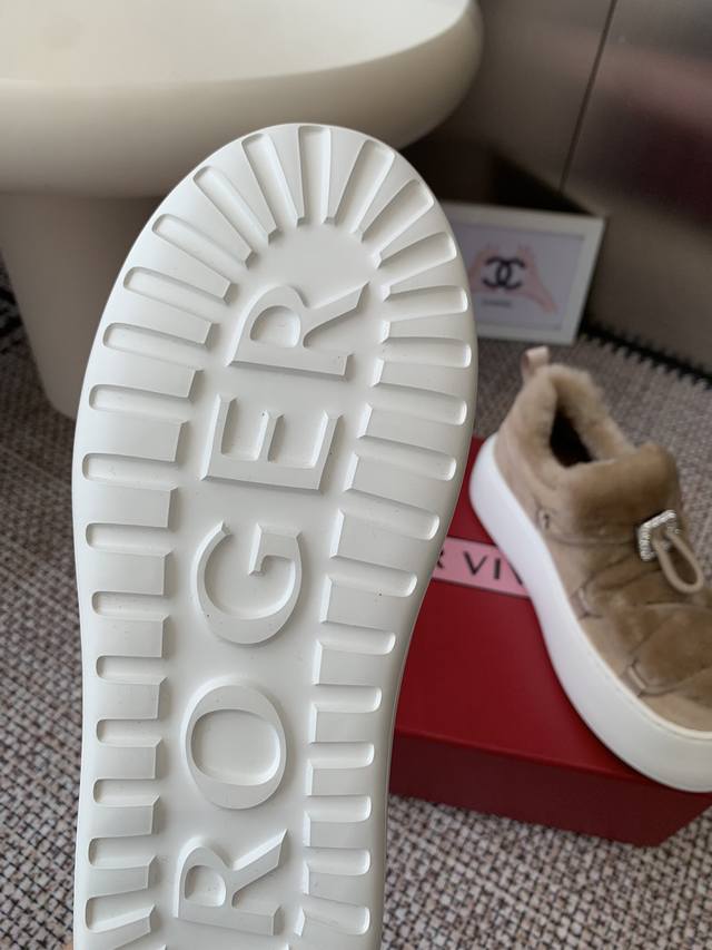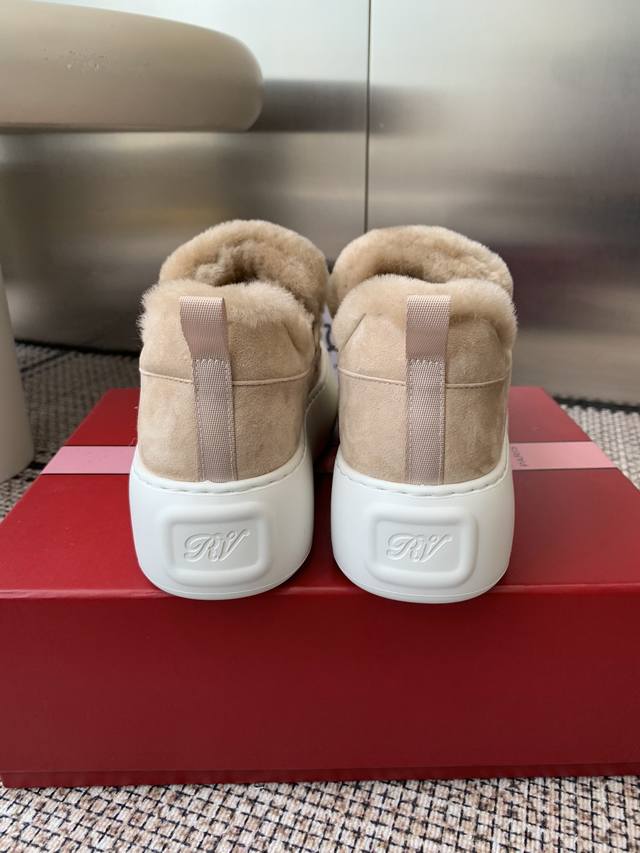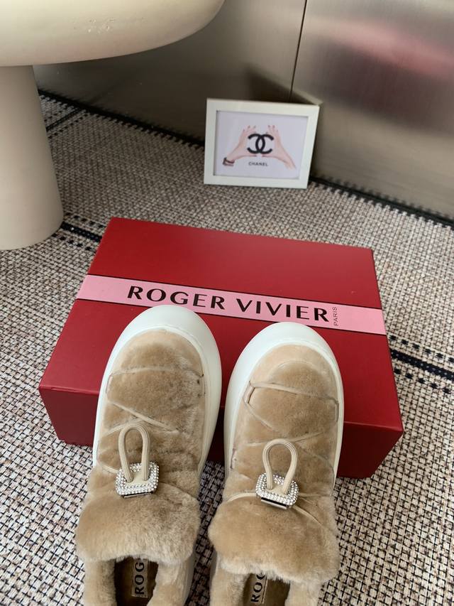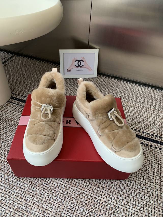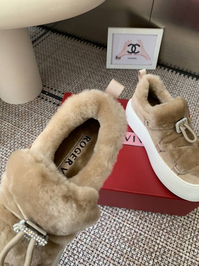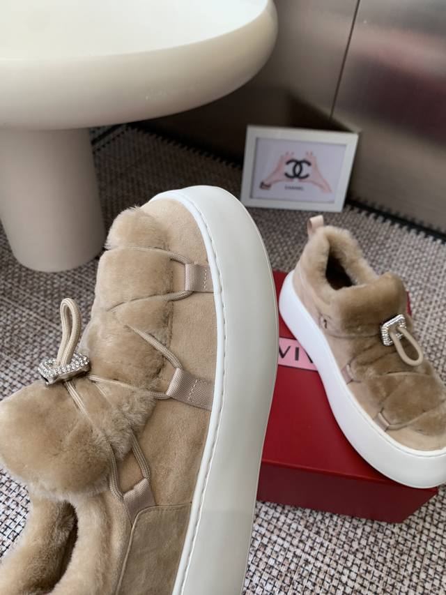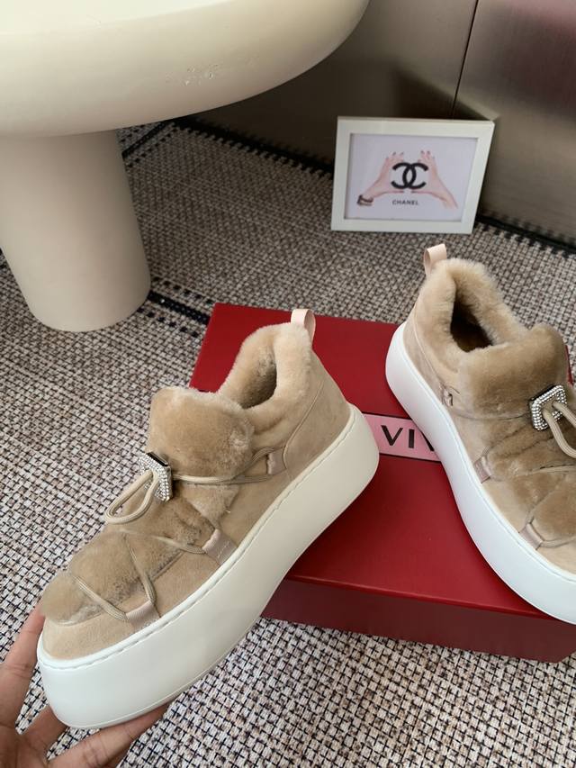 Roger Vivier Rv 25Wf新品 厚底雪地靴 意大利匠心工艺雕琢的鞋面 与澳洲进口绵羊毛内里包裹 让每一步都踏在春日般的暖意中 厚底设计暗藏巧思 堪