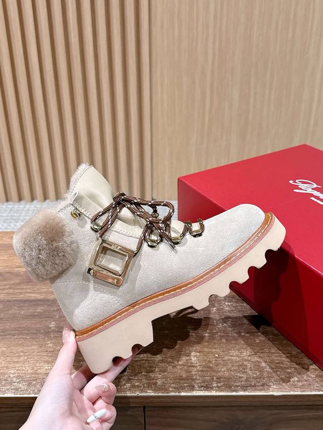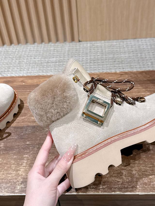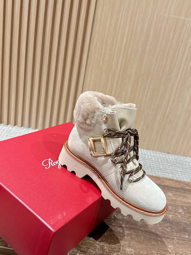 Roger Vivier Viv ' Rangers Truck 罗杰维维亚秋冬新款靴子 个性又不失精致演绎都市风格 复古美拉德色系 摩登马丁靴毛毛靴 身着一身漫不经心的诗意 从容走进让人憧憬的秋冬 毛绒翻边+厚底设计,保暖又显腿长 搭配同系列方扣包,质感直接拉满 Size:35-39 40定制不退换 DDD