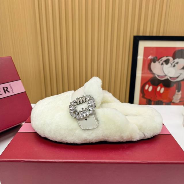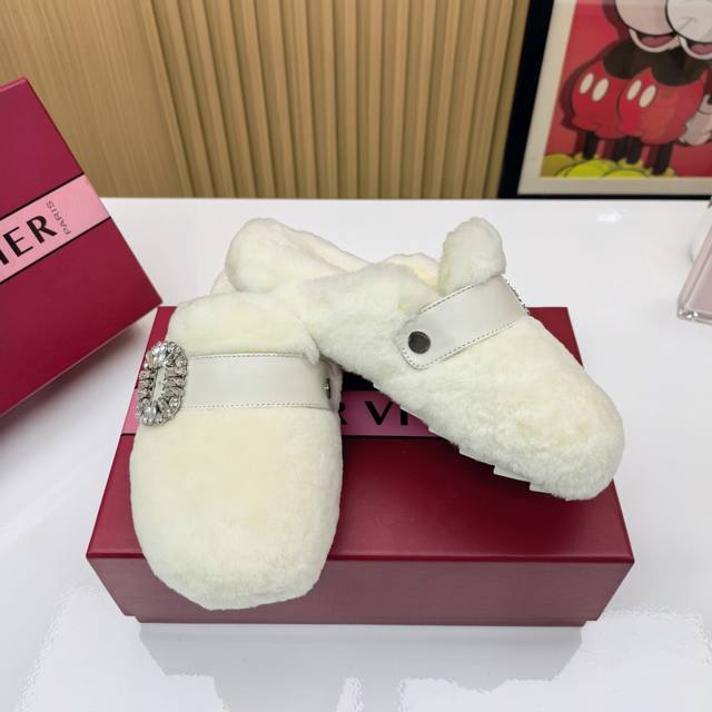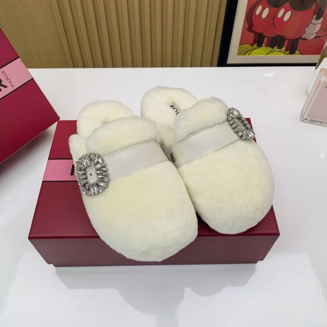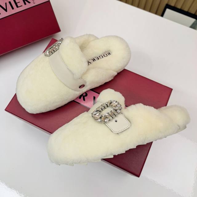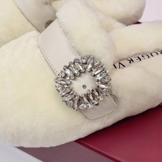 Rv经典钻扣博肯拖 羊毛界的颜值天花板! Roger Vivier设计师款拖鞋把高级感踩在脚下 这双澳洲美利奴羊毛+极简几何设计拖鞋 直接把慵懒舒适变成了 艺术行为 ! 精选澳洲A级羊毛绒 透气恒温 光脚穿像被小羊亲亲 设计师款立体剪裁 隐藏式防滑鞋底 慵懒和安全感我全都要 窝沙发喝咖啡时它温柔包裹双脚 朋友来访时它不经意透露你的好品味 “羊毛的自然褶皱都是设计的一部分 连光脚时的慵懒感都被计算得恰到好处” 鞋面:澳洲美利奴羊毛 钻扣:捷克K9钻 大底:原版橡胶大底 码数:35-40 40不退不换