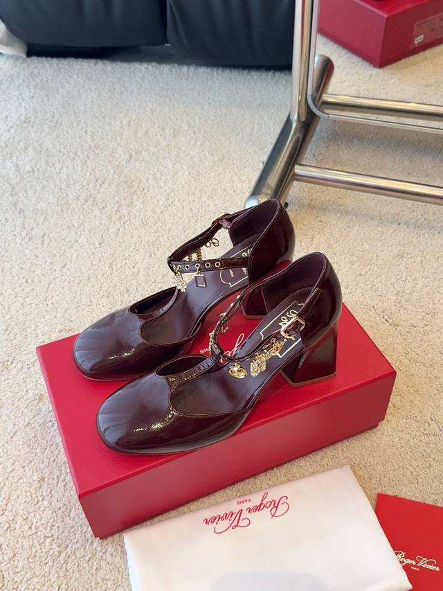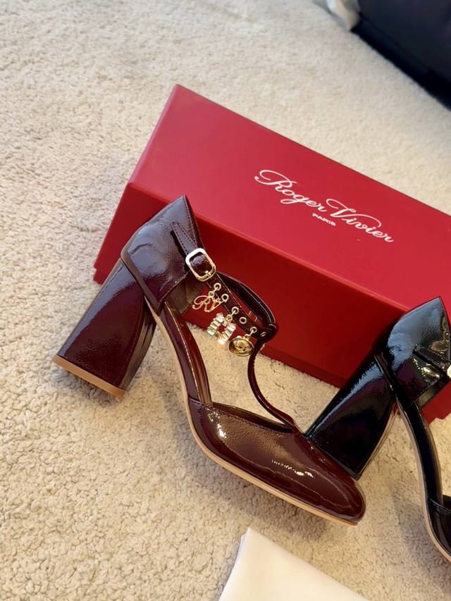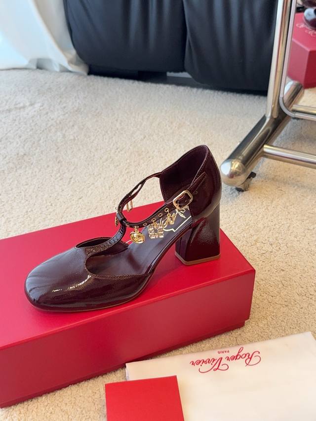 Rv 早春 Tres Vivier高跟玛丽珍 DDD T形扣带点缀金属吊饰,每一步都Bling Bling走路带风柔软皮革工艺搭配8.5Cm粗跟不累脚经典的玛丽珍鞋型,带着浓浓的法式复古风情 DDD 鞋面圆版牛漆皮 DDD 内里垫脚顶级进口小羊皮 DDD 意大利真皮大底 DDD Size:35-39 34 40定制不退换 DDD