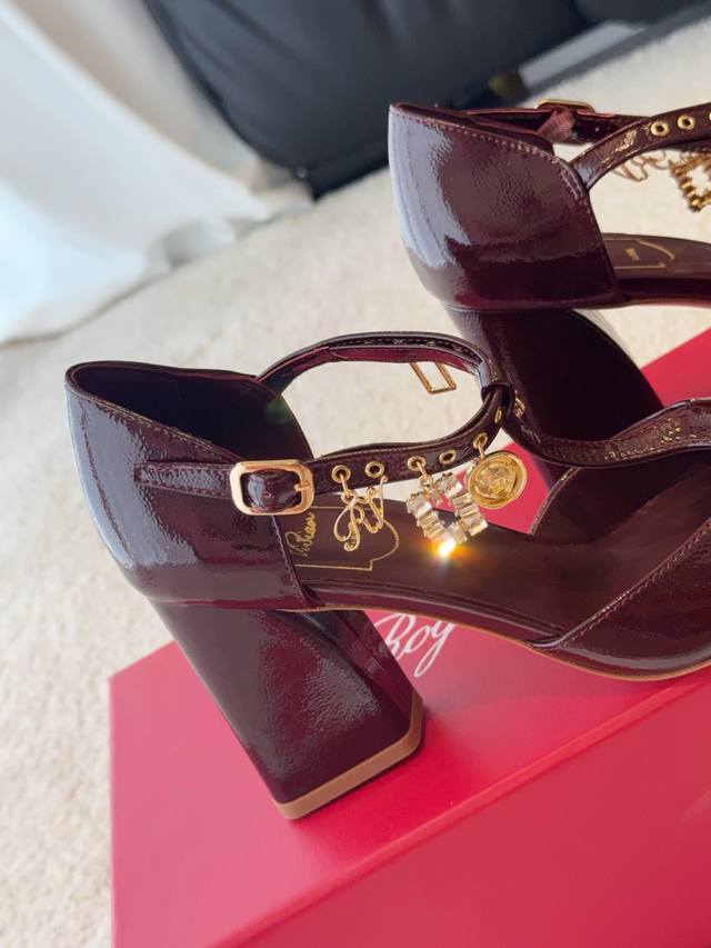 Rv 早春 Tres Vivier高跟玛丽珍 T形扣带点缀金属吊饰,每一步都Bling Bling走路带风柔软皮革工艺搭配8.5Cm粗跟不累脚经典的玛丽珍鞋型,